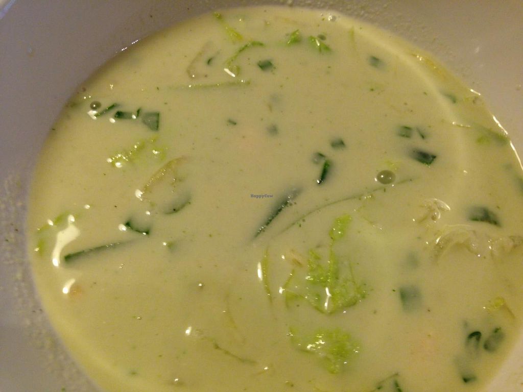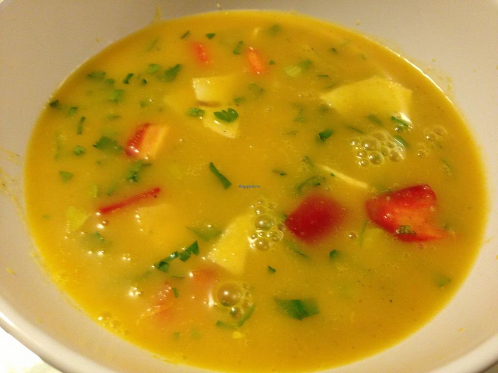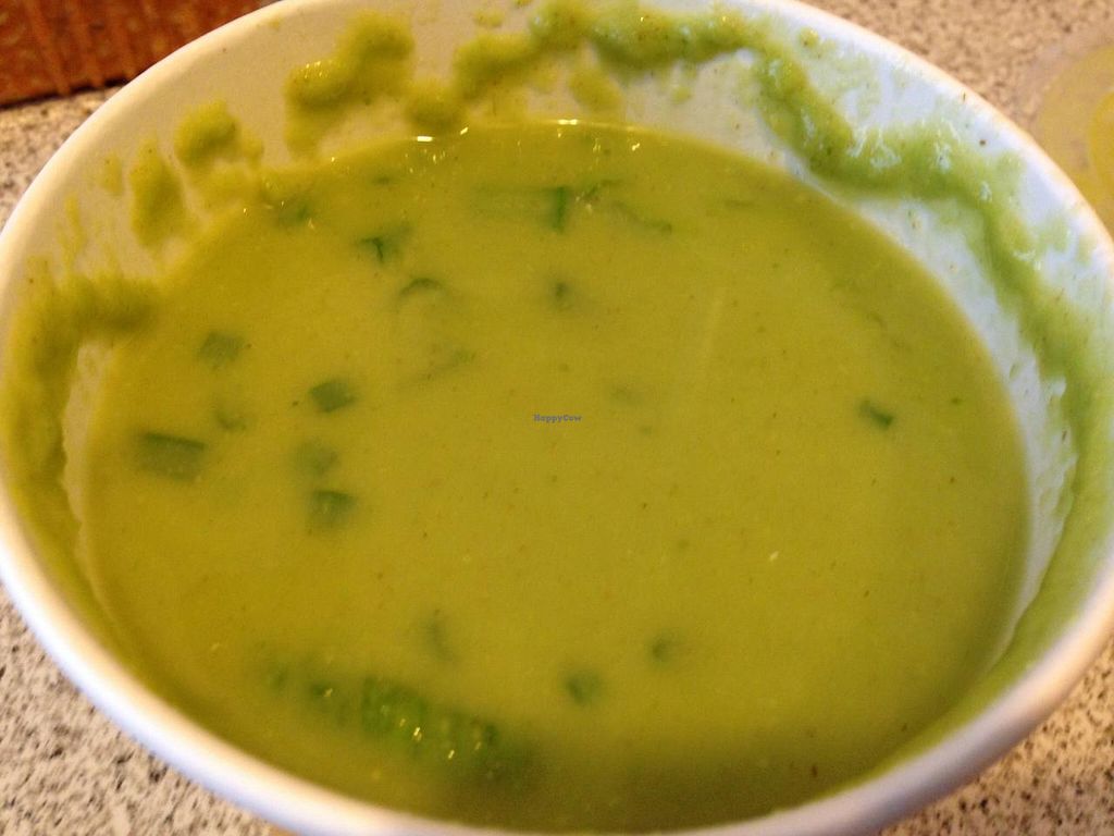 Though in a slightly shady part of town, the interior is bright and inviting. There is a small store of pantry items - cocoa powder, salt, lentils, quinoa, nuts, seeds, oils, etc - also for sale are books and locally made handcrafted messenger bags, earings, necklaces, pins and shirts. There isn't a menu - simply look in their frig for items made fresh daily (pesto, stuffed cabbage, salads, cauliflower salad, soup, and cake). Most if not all items are not only vegan, and raw but also soy-free. The staff is friendly.