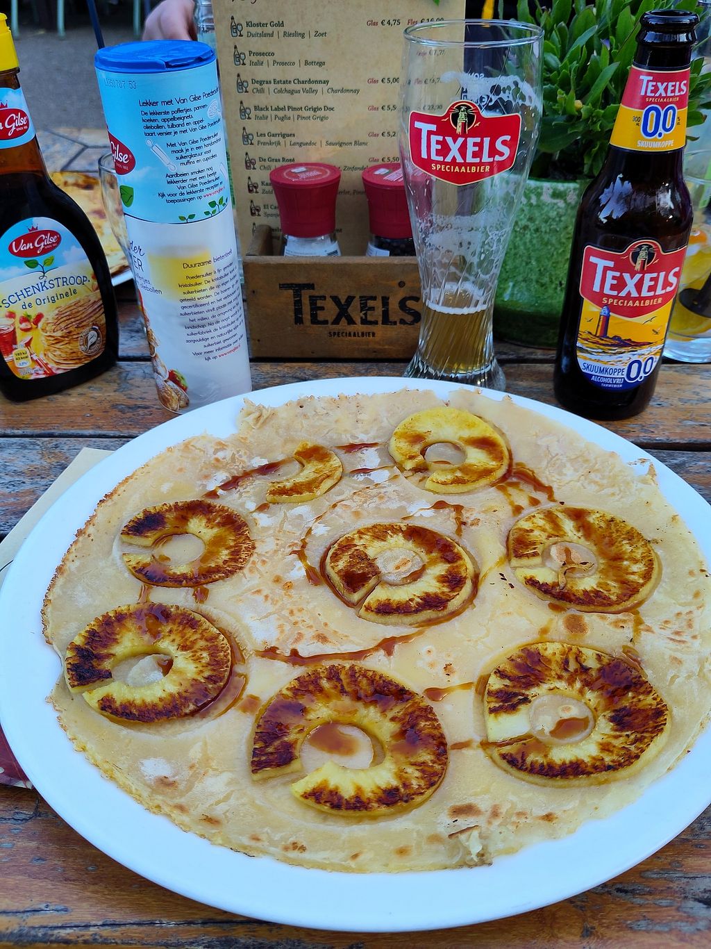 Super leuk dat je tegenwoordig in dit traditionele pannenkoekenhuis ook vegan pannenkoeken kunt bestellen! Alle fruit- en groentepannenkoeken kunnen met vegan beslag worden gemaakt. Dus volop keus!