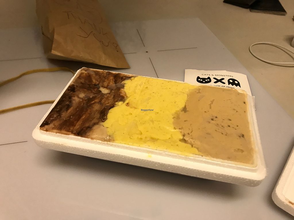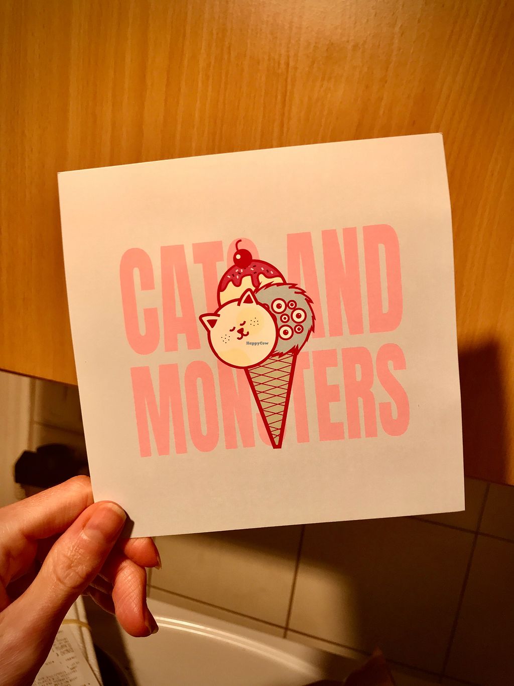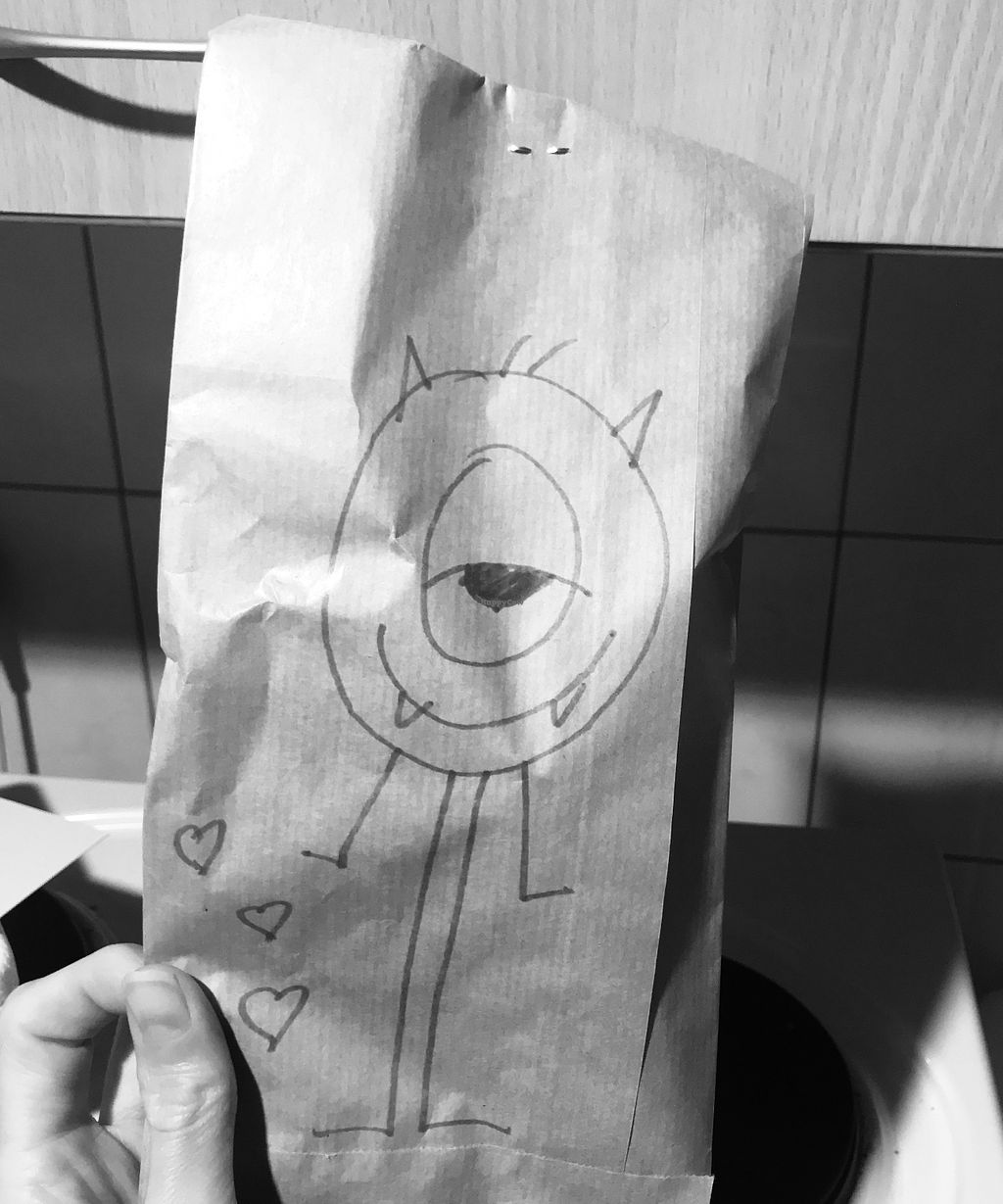 A monster drawn on the vegan ice cream cone delivery bag