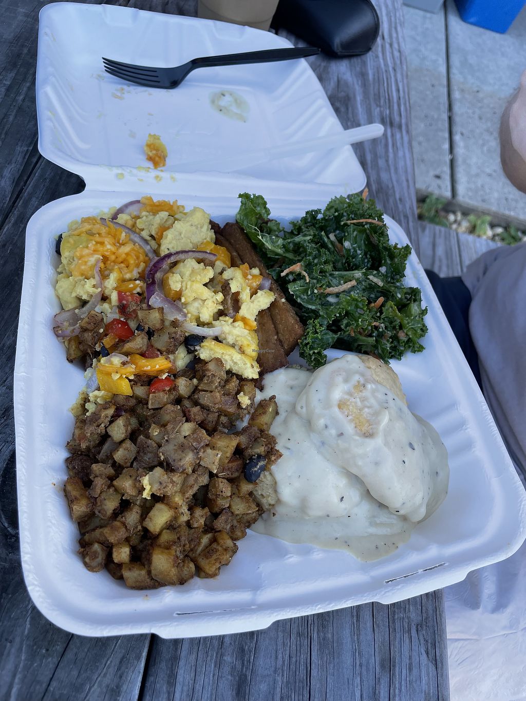 Biscuits and gravy with chik'n and focaccia sandwich with tofu and misβ¦