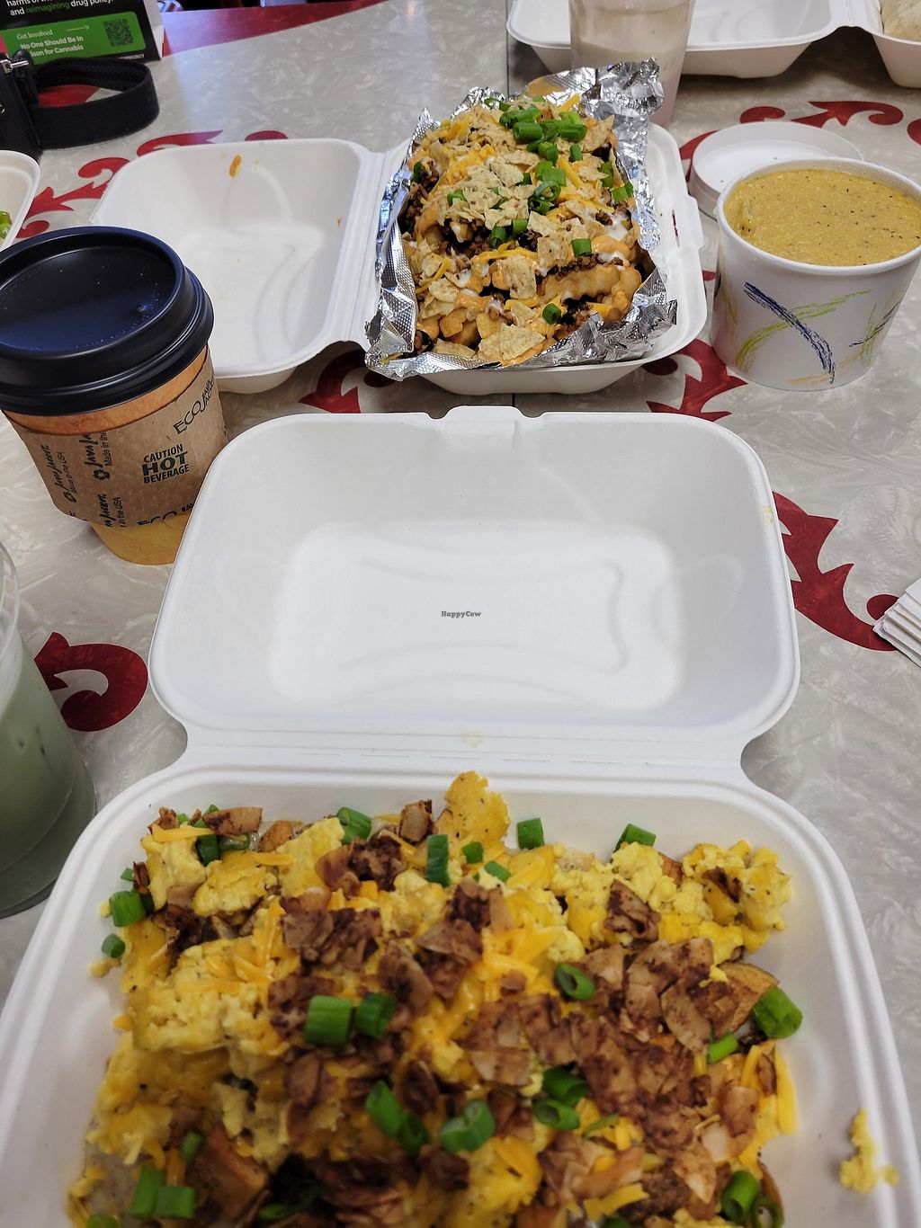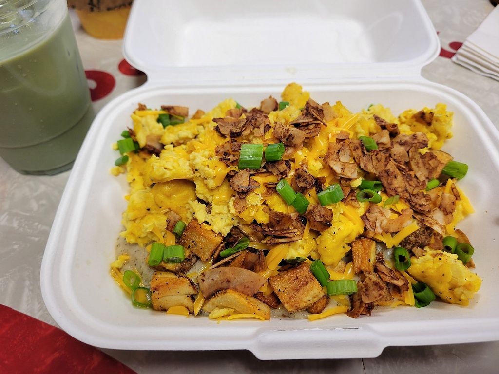 GF loaded biscuit (eith Just Egg), taco fries and grits