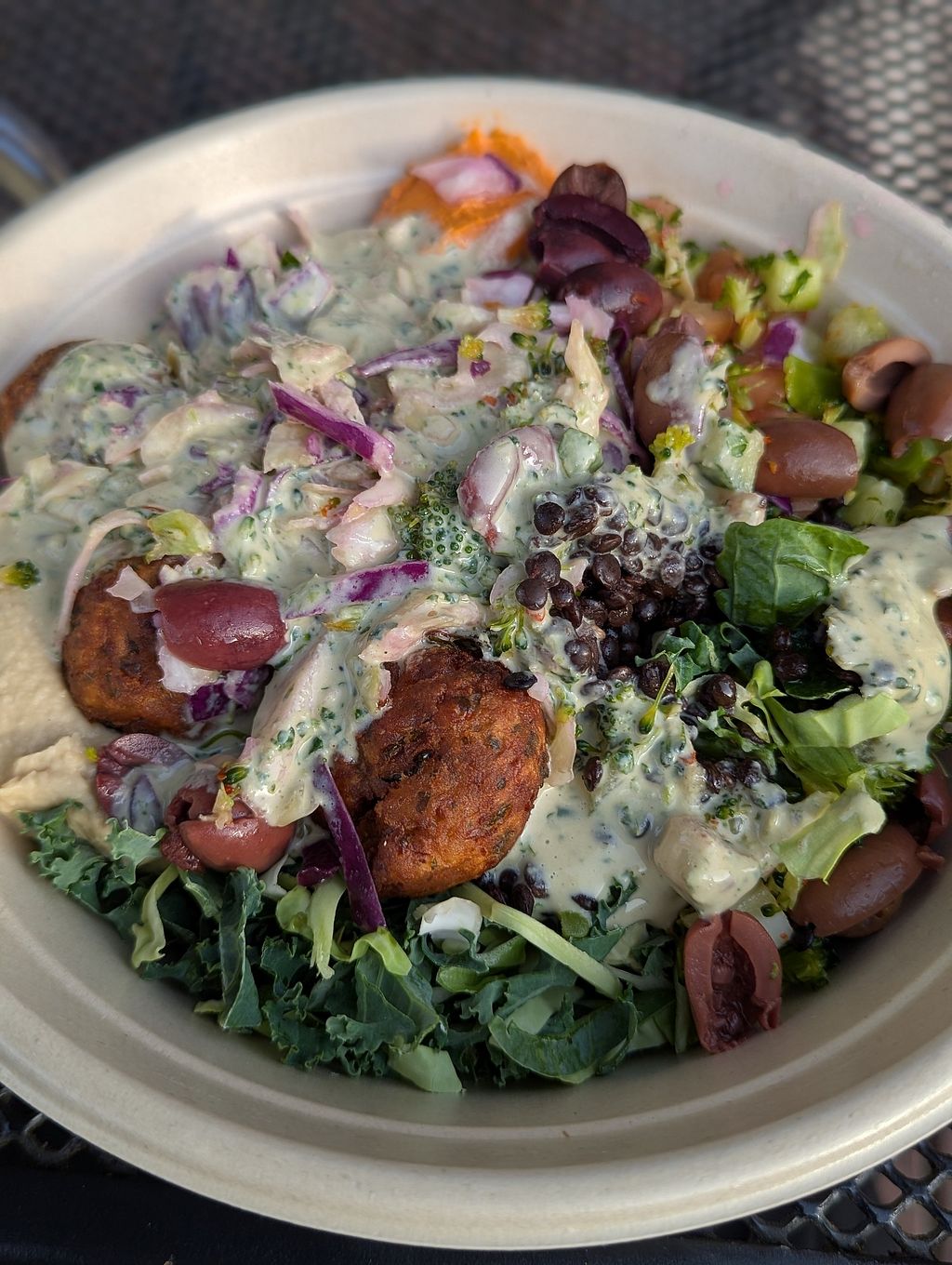 I wish they expanded this chain! Amazing food every time, and at an affordable price! My omnivore family and I love it. So many different flavors mixed together in a delicious Mediterranean bowl. I always get the greens and grain bowl (with lentils and super greens plus arugula), and a mixture of falafel and grilled veggies. Their MANY toppings and dressings are amazing, with a lot of vegan options. And after finishing such gigantic mountain of food, I never feel disgustingly full. The options are healthy, protein packed, and again, full of flavor. I highly recommend. Even their drinks are yummy!