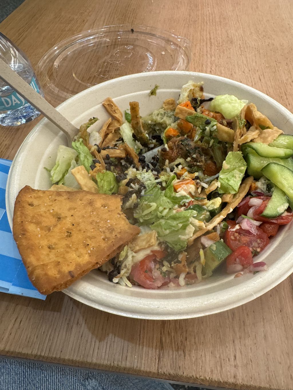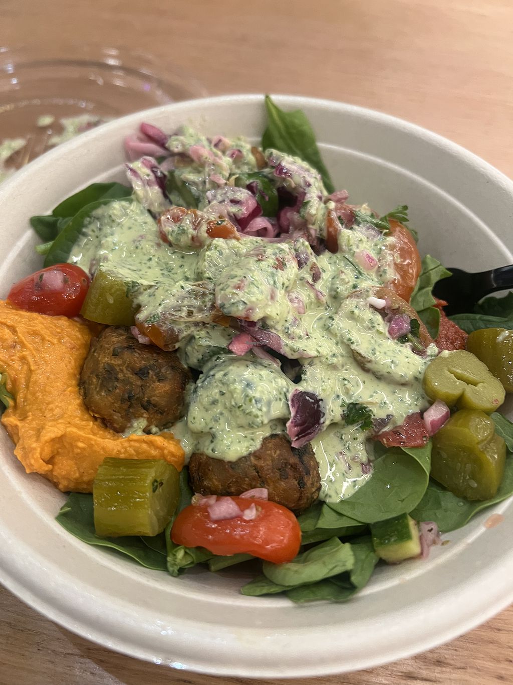I had the falafel crunch bowl. You need to remove the feta but otherwise it’s vegan (including the dressing which I wasn’t initially sure about) at $12 this is a pretty good salad bowl. At over $20 i don’t feel quite as generous.