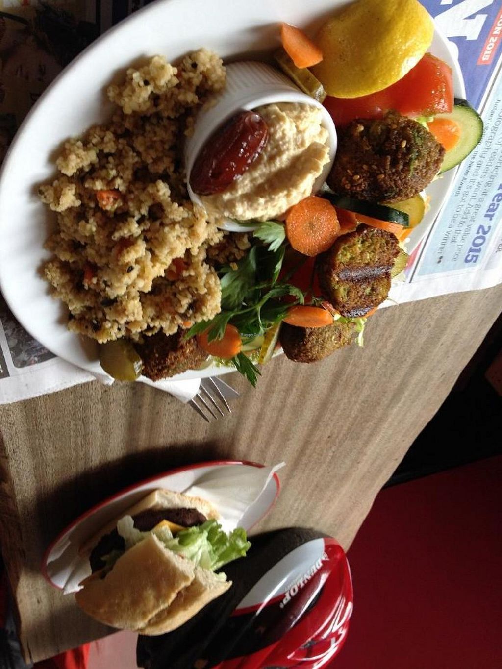 This is a very cosy, laid back little cafe. Very comfortable and informal environment. With Wifi. And they display local artists' work in there, which is really great. They usually have at least one vegan lunch option and really great vegan deserts. Loved their falafels. The staff is really nice, too.