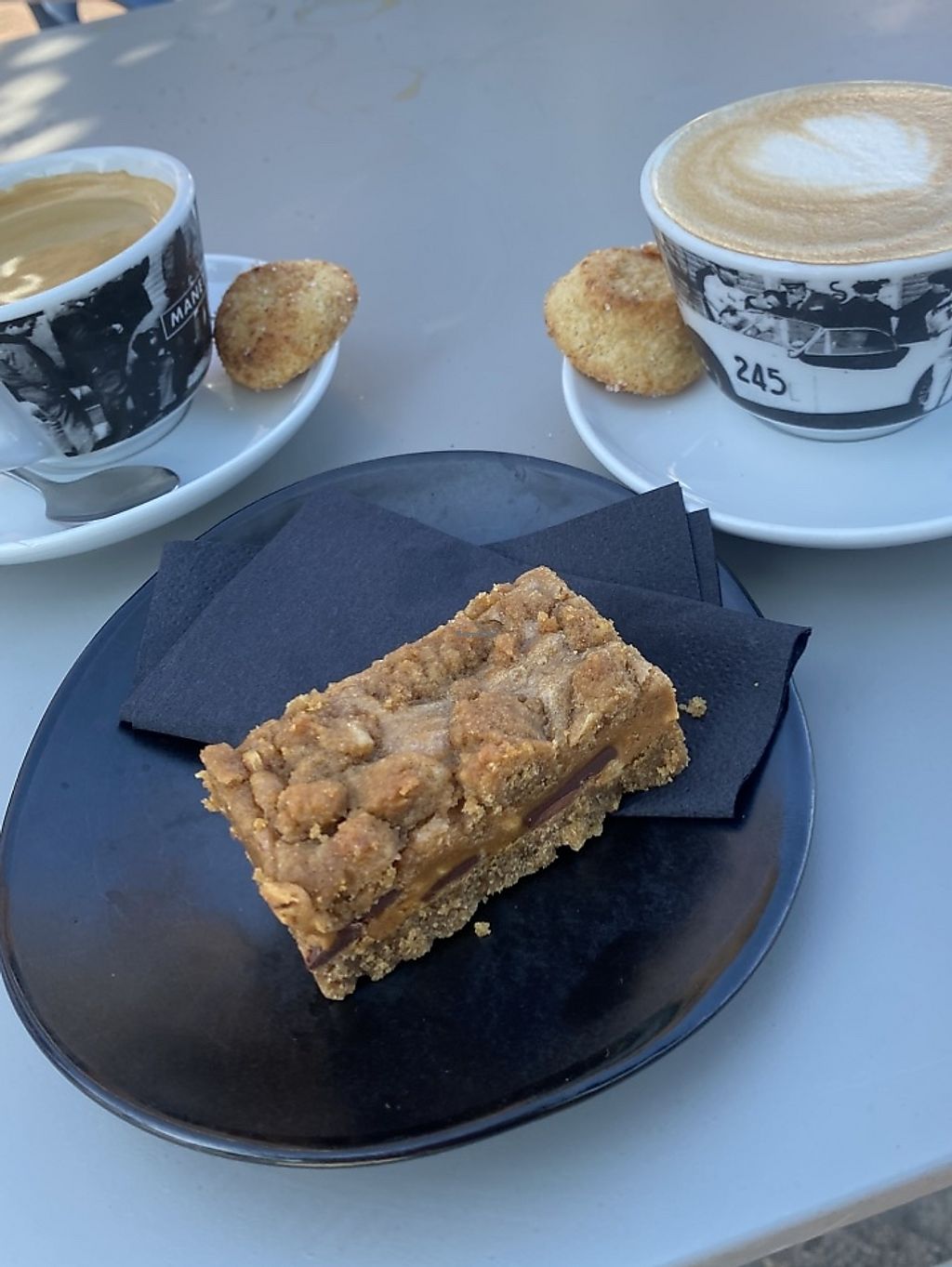 Koffie is prima. Havermelk toeslag van 70 eurocent is wel aan de hoge kant. Verder gebakjes aanwezig van Sharp Sharp