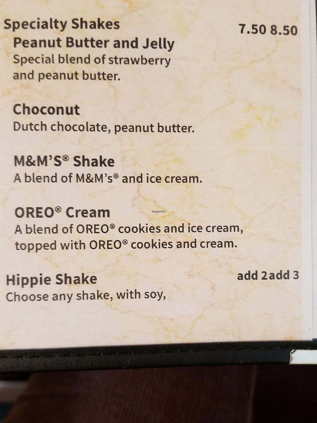 Shakes made vegan with soy milk & ice cream ('Hippie')