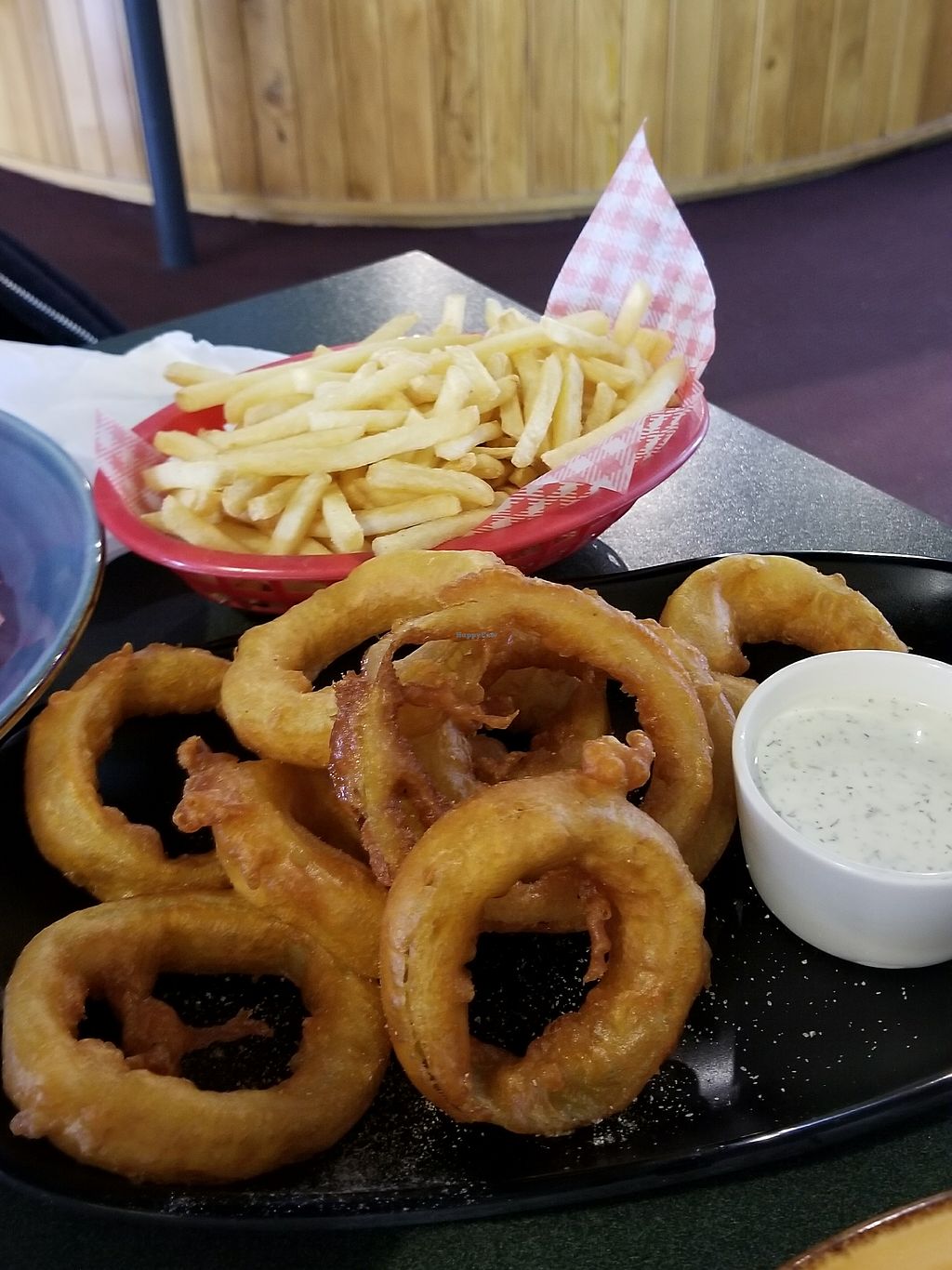 Fries & Onion rings with vegan aioli