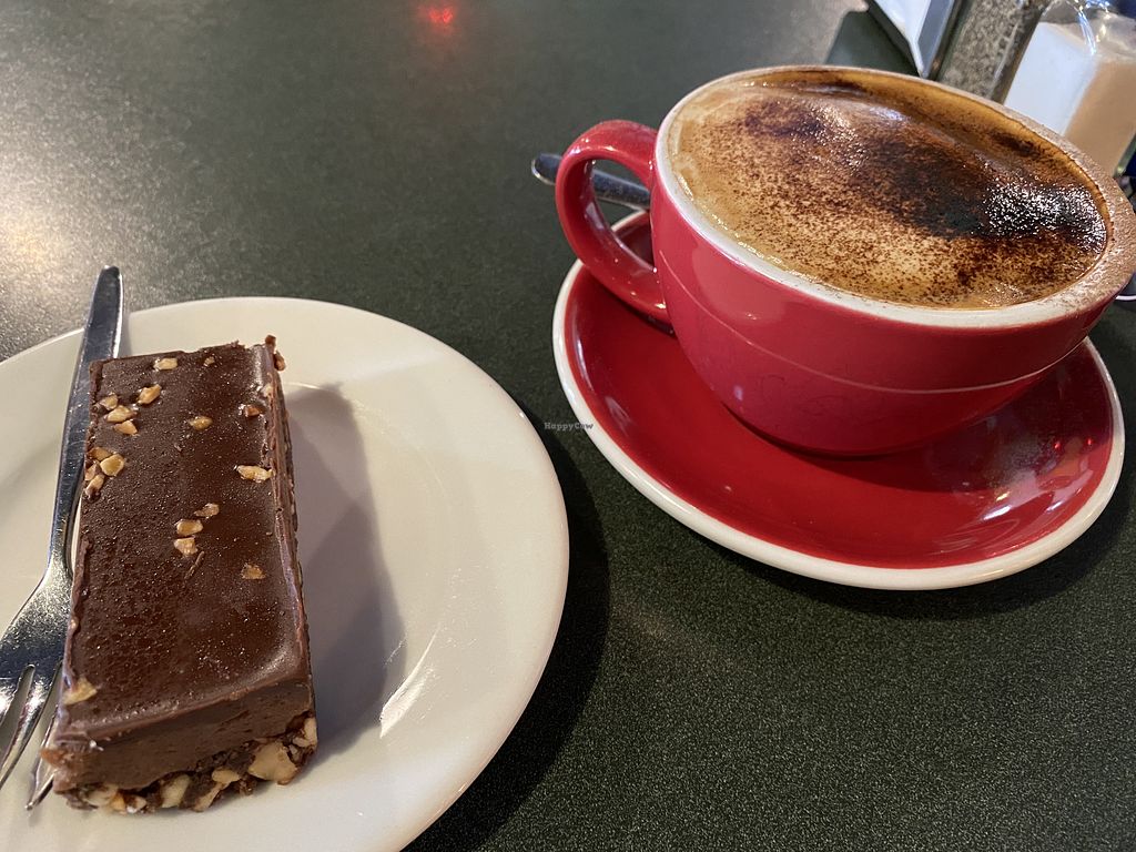Vegan dessert and cappuccino