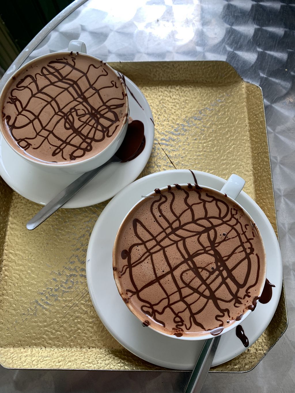 We had vegan hot chocolate with oat milk, and with nut milk (three non dairy options). It was rich, thick and creamy and clearly made with good quality chocolate that had been melted. Perfection!