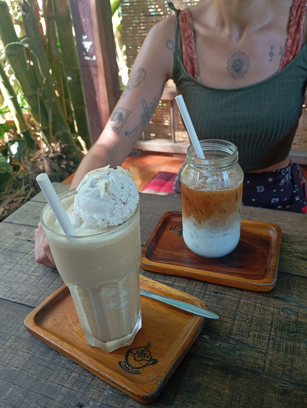 Coconut ice cream with vegan Hershey’s chocolate sauce