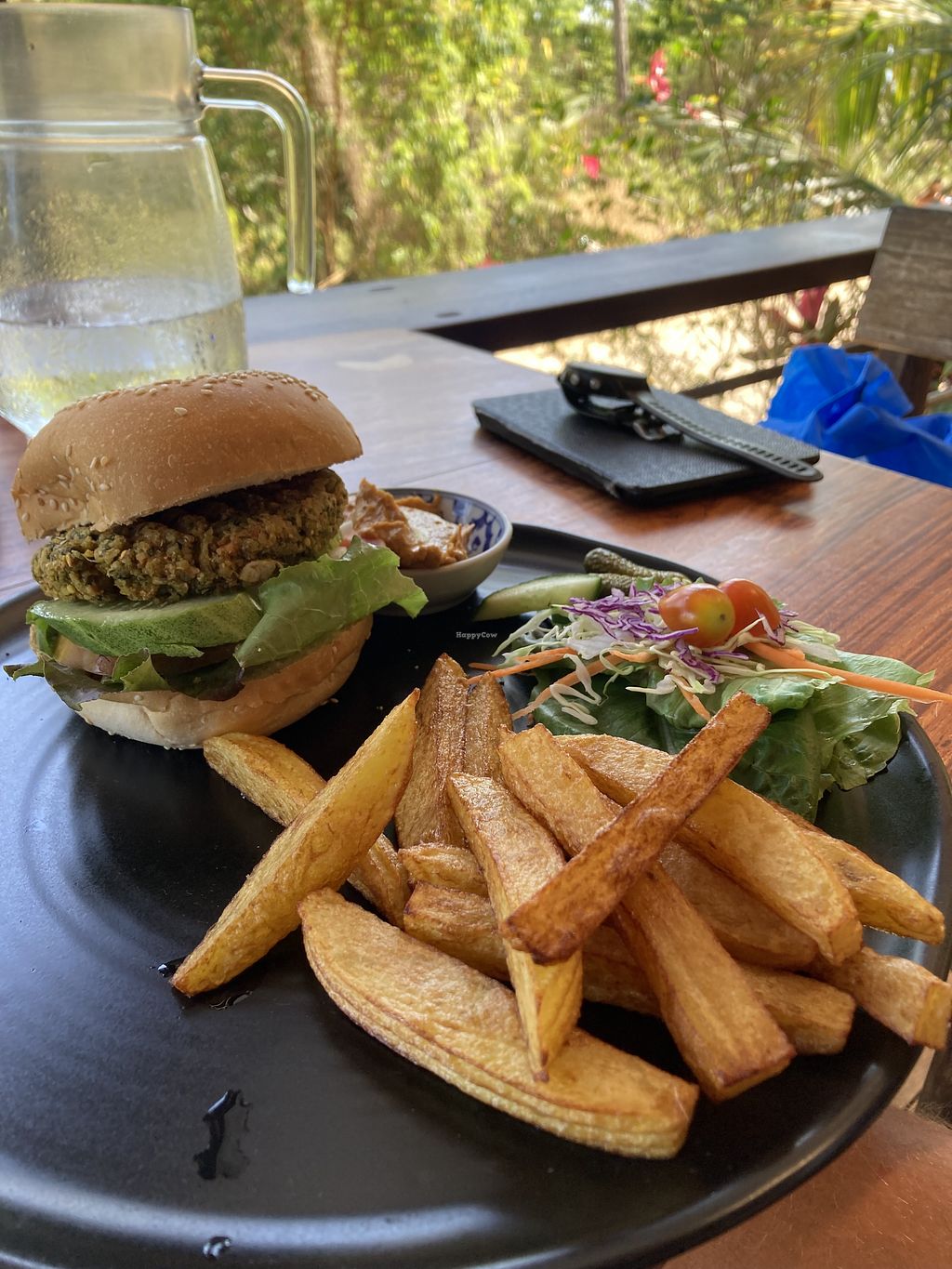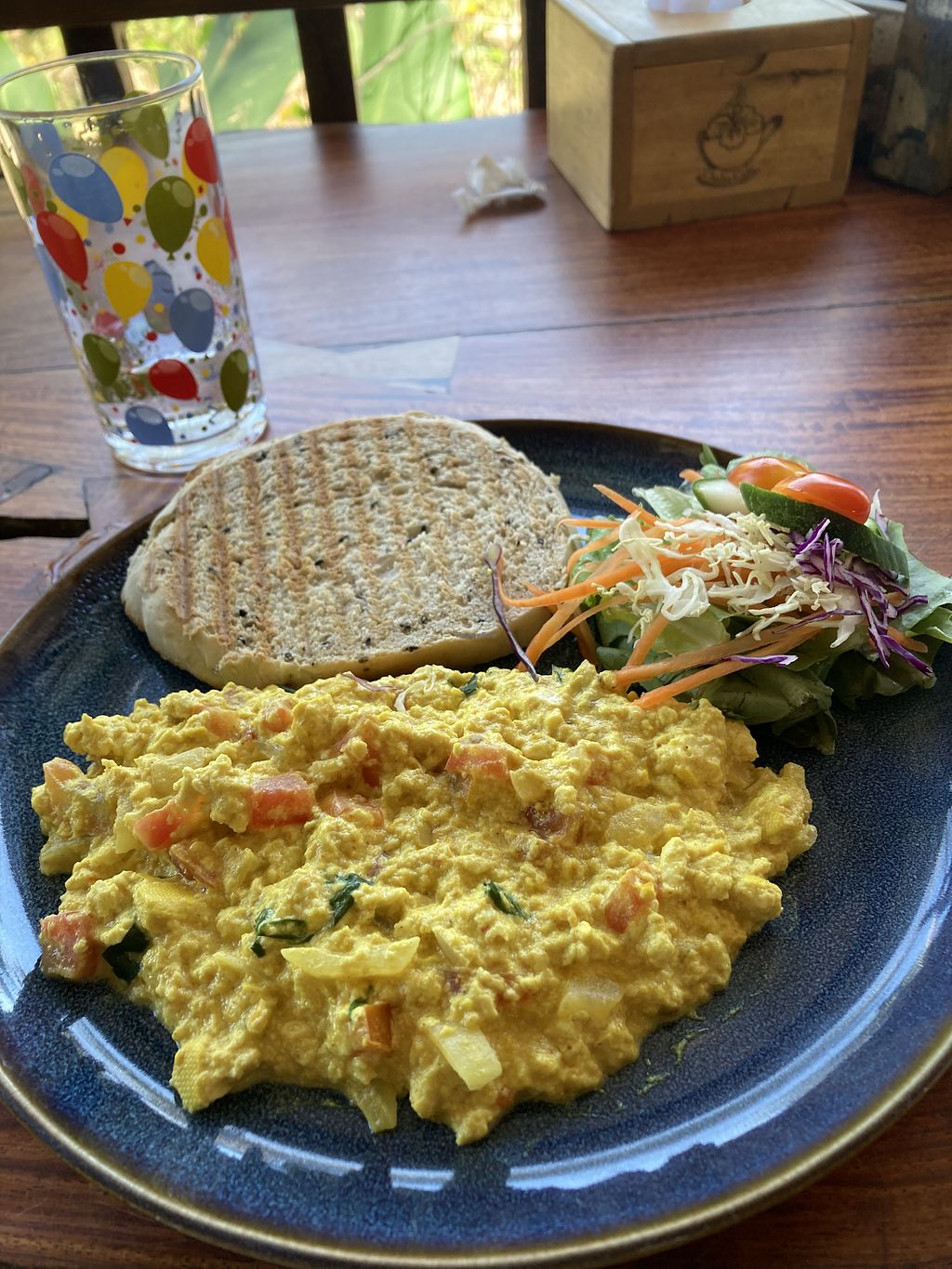 Boyfriend and vegetarian pesto wrap and I had vegan chickpea “stirfry”…