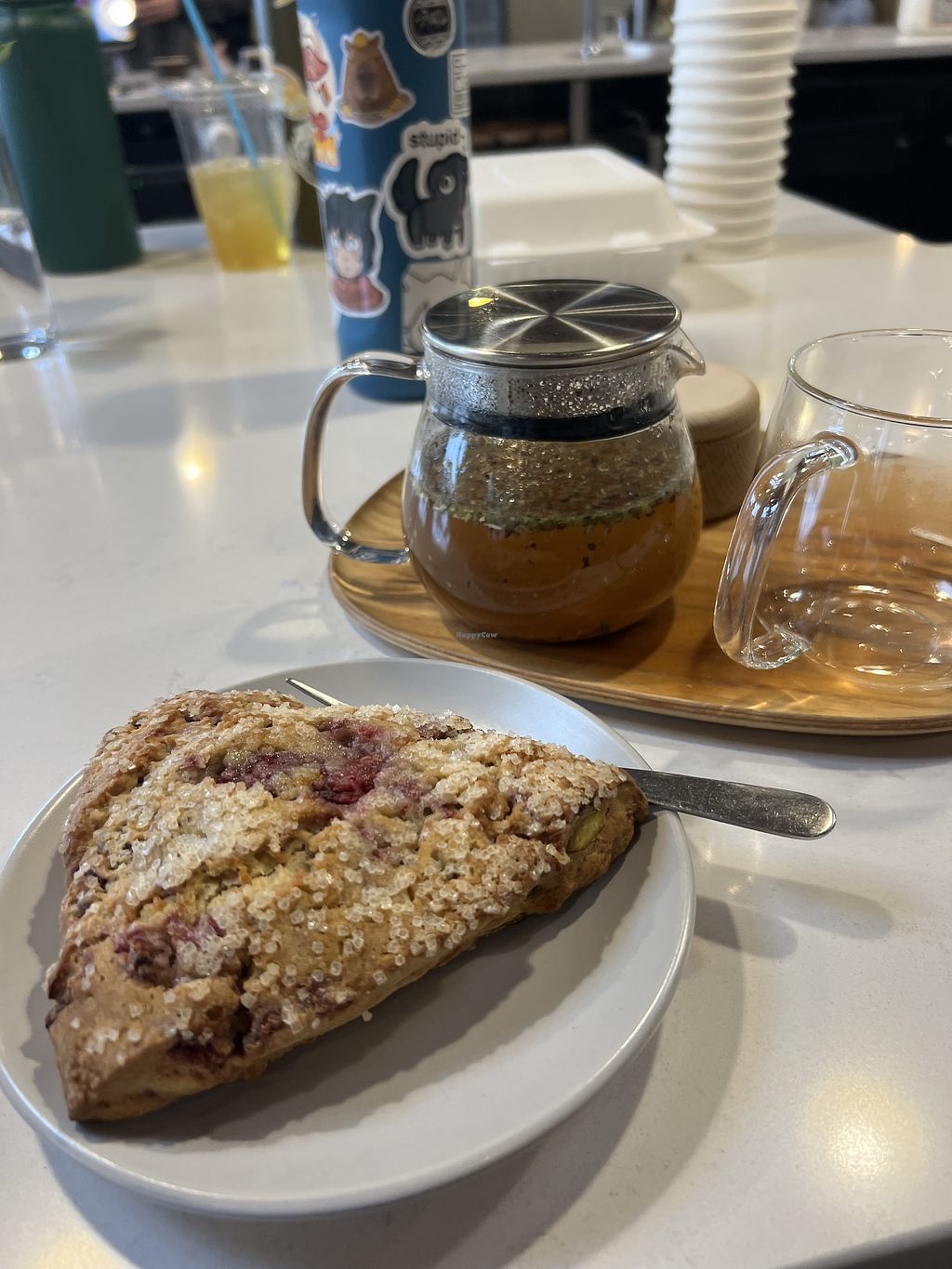 So many flavors of tea and vegan treats including a scone, pop tart, cookies and savory pastries as well. Service was fast and the ambiance is cozy.