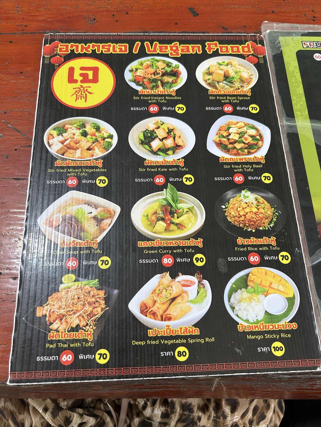 Vegan part of the menu and Jain logo displayed