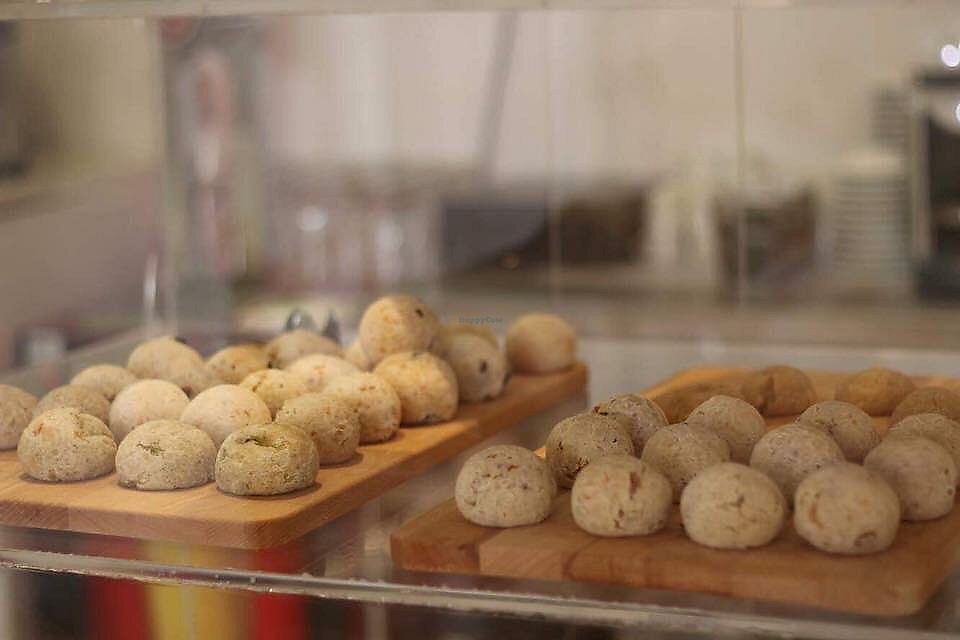 Read moreThey have vegan cheesebread with tofu + sweet and savoury fillings, a vegan brunch option with yoghurt/granola, vegan cheesebreads, juice, coffee/tea and there's also always at least one vegan cake.