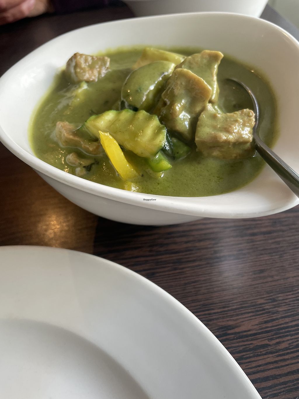 I really enjoyed my meal here. We didn't know we could eat in so had planned to take away. The person who greeted us was really friendly and helped us select vegan options. Wait time was 15 minutes and it was still warm after a 20 minute drive back to our accommodation. Food was really tasty. We were really happy with the massaman and panang curries. Good value for money. Only down side was biting into a star anise or something similar. We also should have ordered another rice because between two of us 3 saucy dishes felt like it needed more carbs.