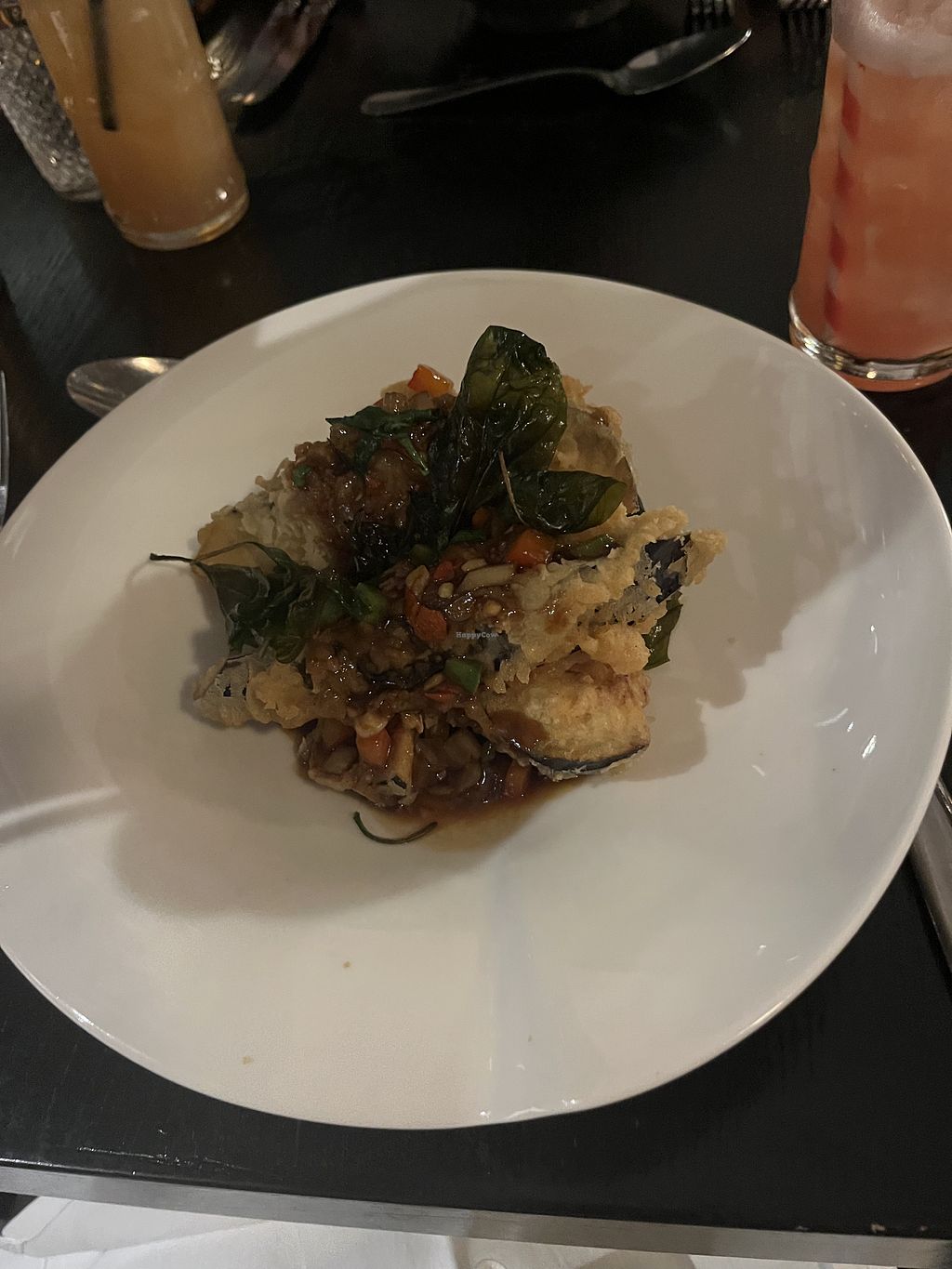 Deep fried aubergine stir fry