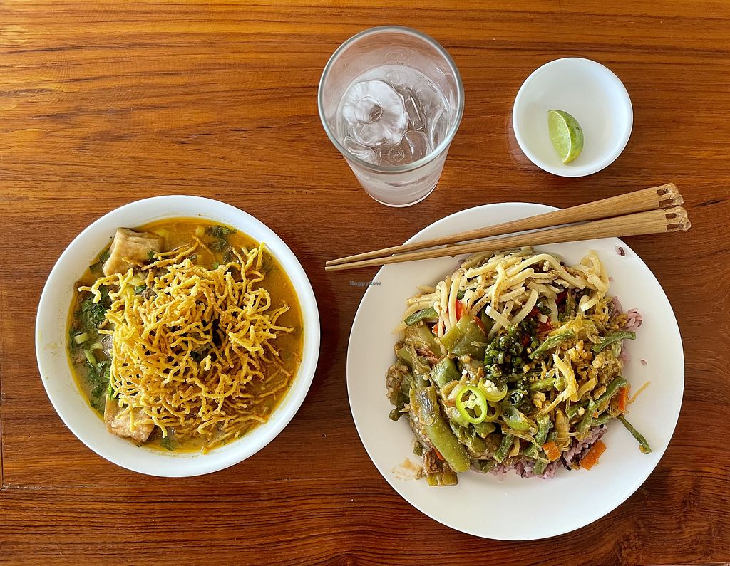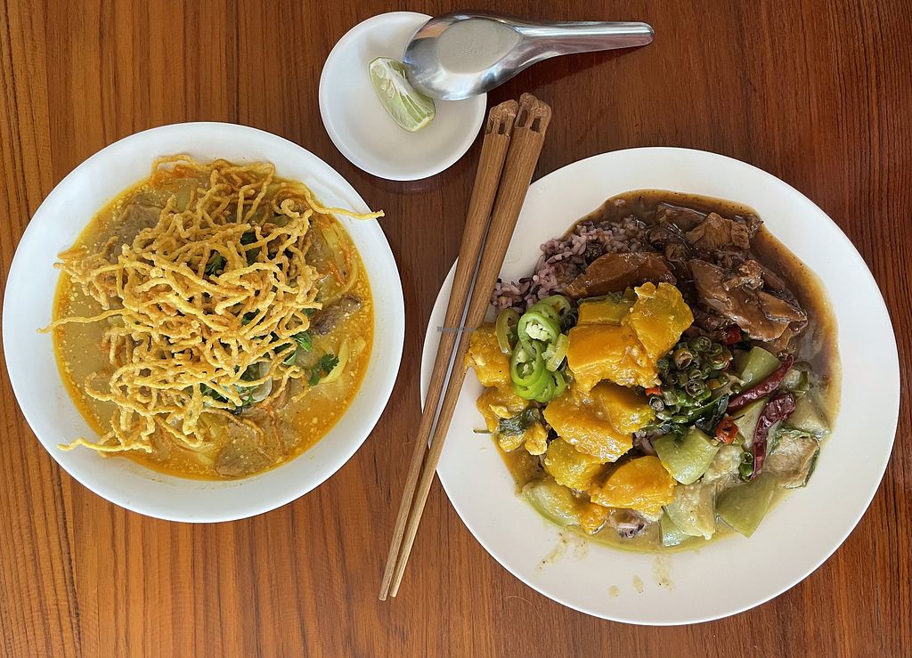 Loved this place. Will travel to Thailand to eat here again one day. Has buffet style to select a few dishes and also has some specific dishes such as vegan Khao soi which I really enjoyed. Amazing value at 40-50 baht per meal. Add this place to your Pai itinerary