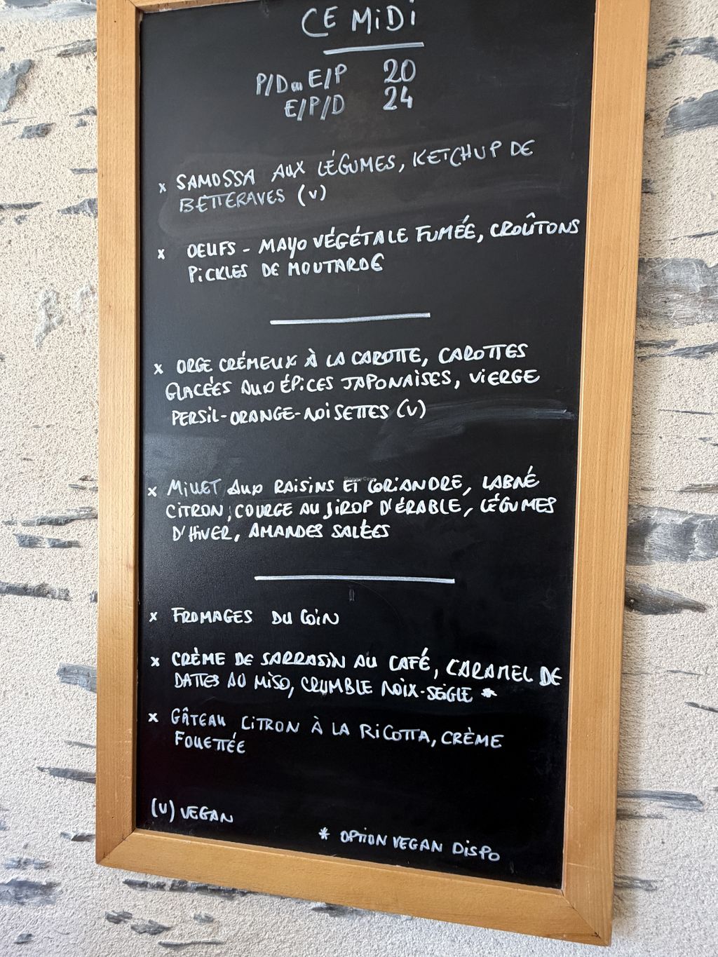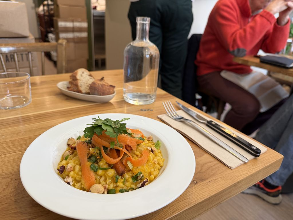 Des plats simples à base de céréales peu proposées habituellement, de légumes de saison. Des plats ou options veganes de l’entrée au dessert. Le service est agréable et les prix raisonnables (20€ pour plat et dessert)