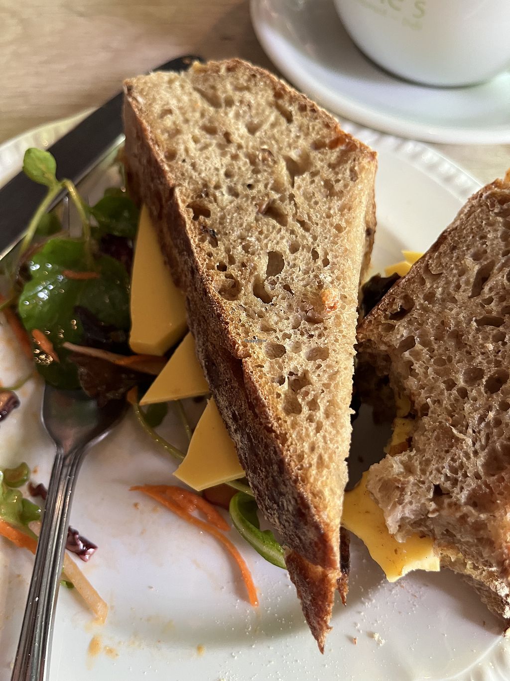Turmeric bread filled "sandwich" & goat's cheese salad.