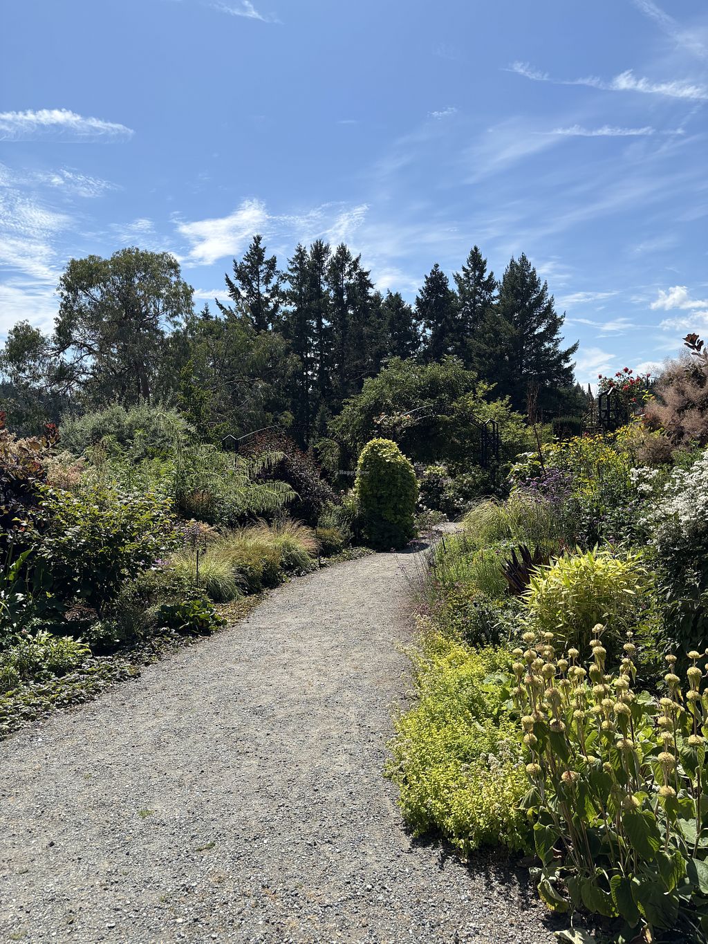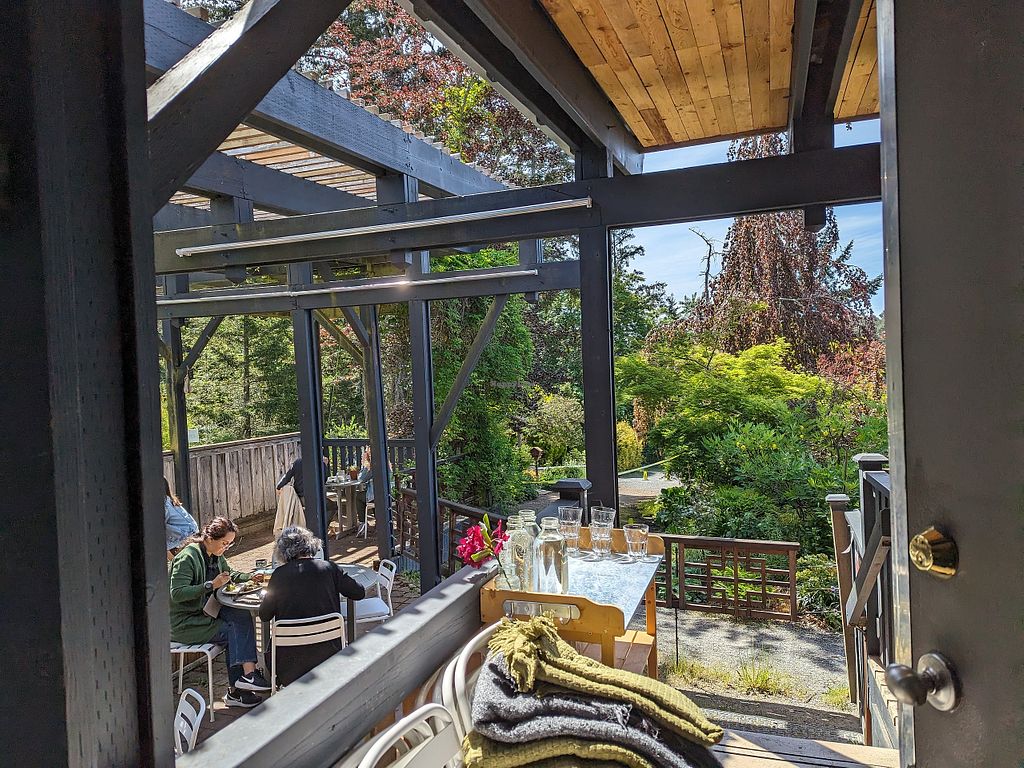 There are a few vegan items on the lunch menu, and they are delicious! The soup of the day was really, really good - it had potatoes, lentils and other things. I’m so glad I ordered the sweet-potato fingerlings with dip - they were excellent! (Unpeeled, no doubt super-healthy.) The house-made lemonade was good too. Everything is garnished with sprigs from the Horticulture Centre of the Pacific gardens.