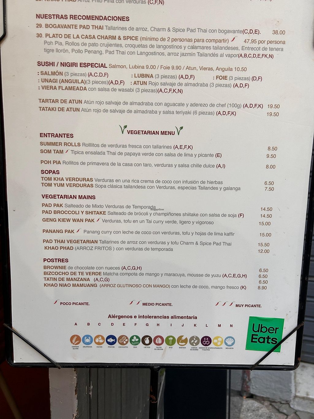 Pequeño restaurante tailandés en el centro de Rota con una sección del menú para vegetarianos/vegano (asegura con el camarero en caso de llevar huevo).