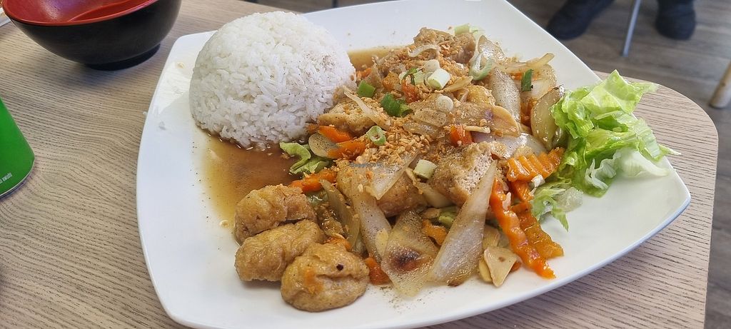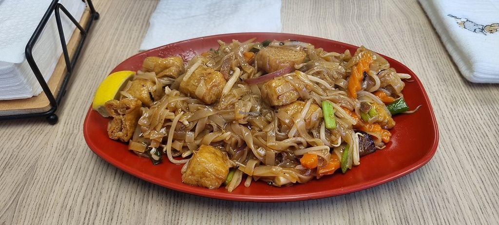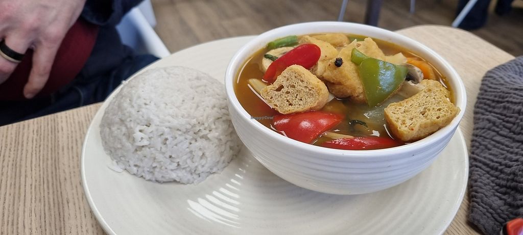 Serves meat, vegan options available. Thai restaurant with an extensive, specific vegan menu with items like Vegetable Spring Roll, Sweetcorn Cake, Crispy Mixed Vegetables, Tom Yum Soup, and Tom Kha Soup. Noodle dishes like Pad Thai, Spicy Noodle - Pad Kee Mao, and Soya Noodle - Pad See Ew are available. Open Mon 12:00-21:00, Wed-Sat 12:00-21:00. Closed Sun. & Tues.