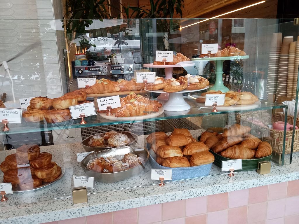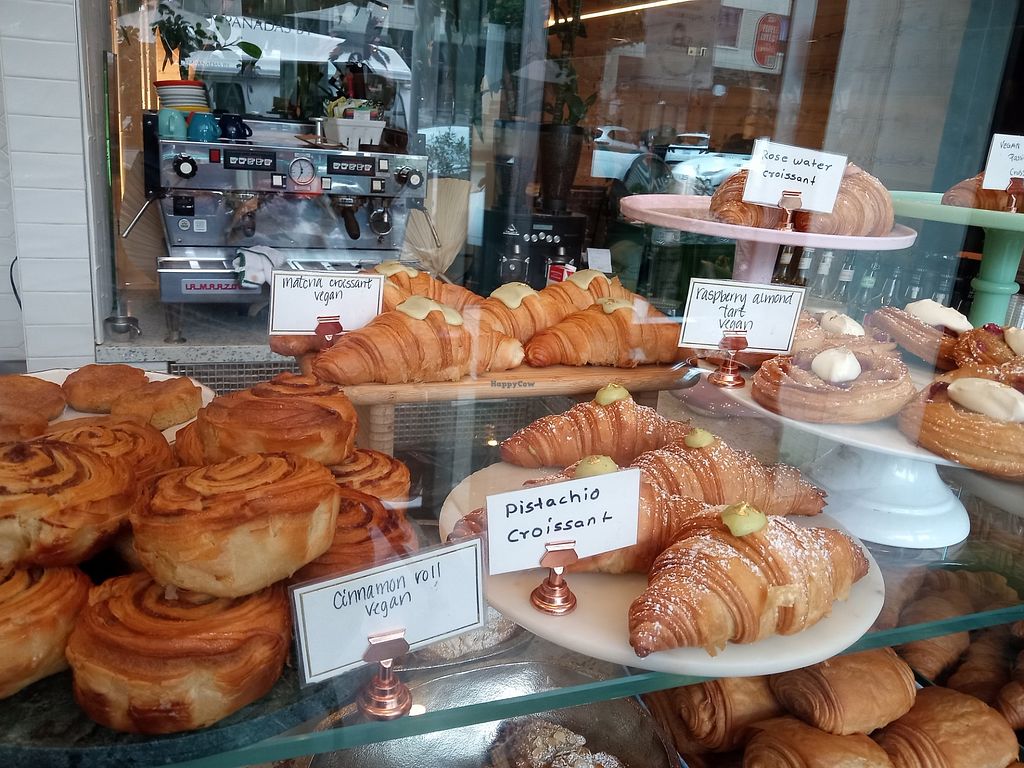 Incredible vegan pastries - most of their pastries are vegan! I highly recommend the almond chocolate croissants. Sooooo good. Prices of the pastries at time of writing range from 4-7 dollars. The staff is very friendly too