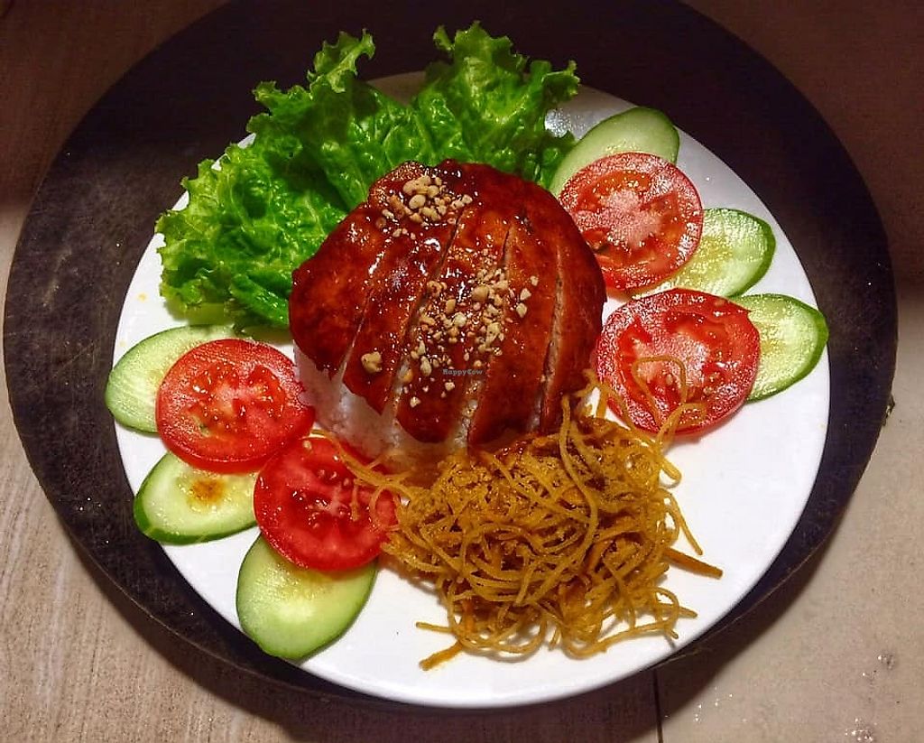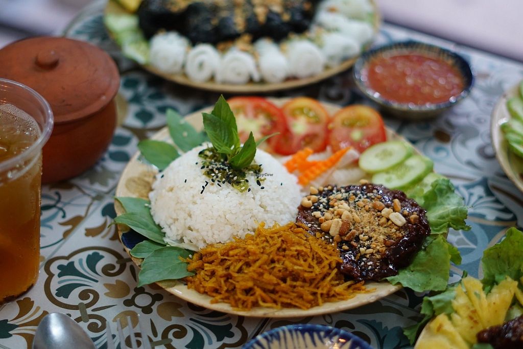 I forgot how good NHÀ TÔI VEGAN is. Clean, friendly, fresh food and with the friendliest kitten I've seen. Probably the best value vegan com tam in District 1.