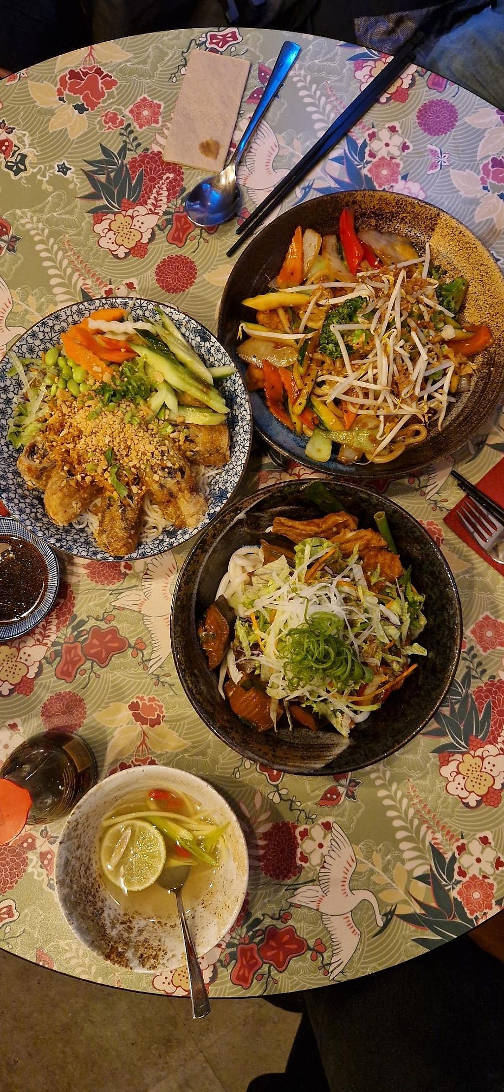 Skøn vegansk asiatisk mad. Store portioner. Desserterne så lækre ud men vi var for mættet efter hovedretten.