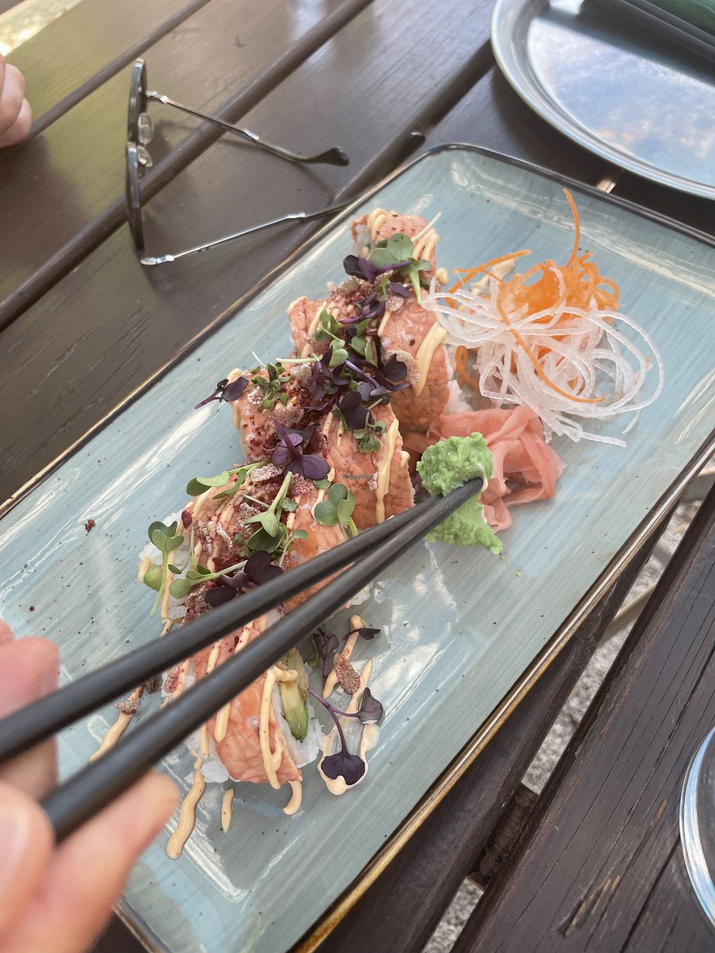 The sushi is creative and always really good. The location is beautiful as well and service is excellent. We‘ve been there are few times and were never disappointed.