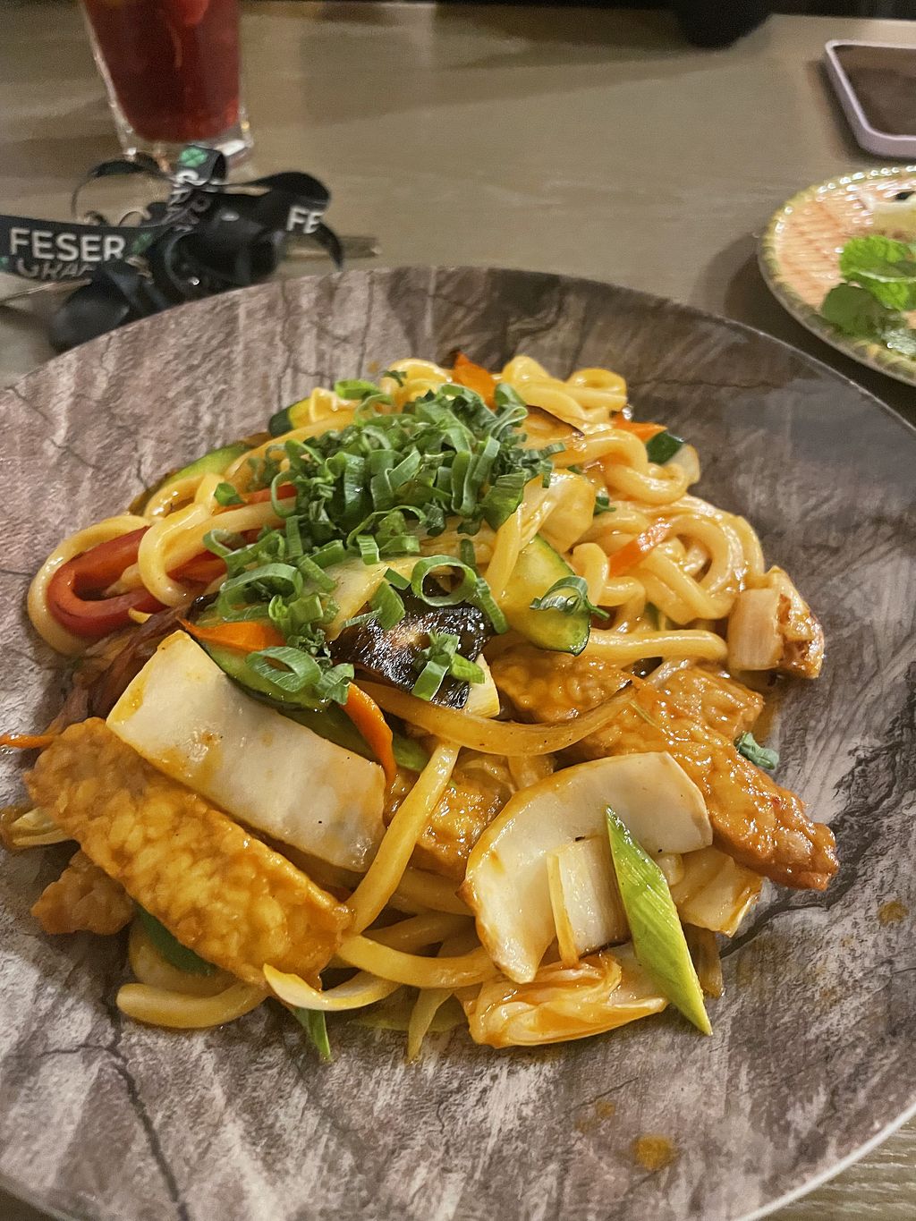 Tolles und vielfältiges Angebot verschiedenster Gerichte und Getränke, 100% vegan. Ich hatte den Haxen, welcher für meinen Geschmack etwas mehr Würze vertragen hätte. Die anderen hatten Schnitzel, Sommerrollen und Udon-Nudeln, ihnen hat’s geschmeckt.