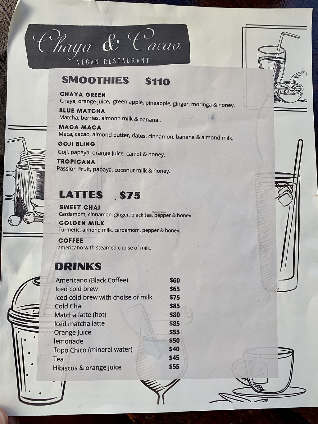 Menu drinks