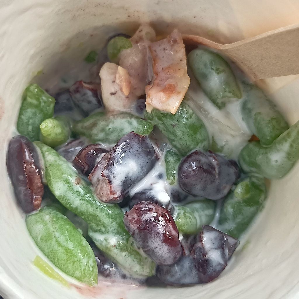 Minorly obsessed with this place. I'm a big fan of the colourful wibbly wobbly agar jellies and tapioca chestnut gems, coconut, various sweet beans, and subtle and aromatic flavours such as pandan and pomelo rind. Not completely vegan though, and no real non-disposable dine-in option though.