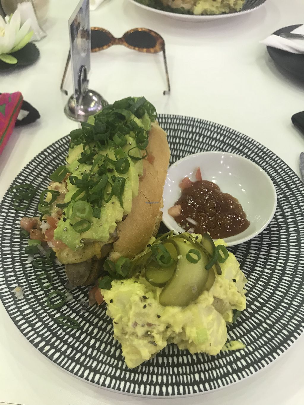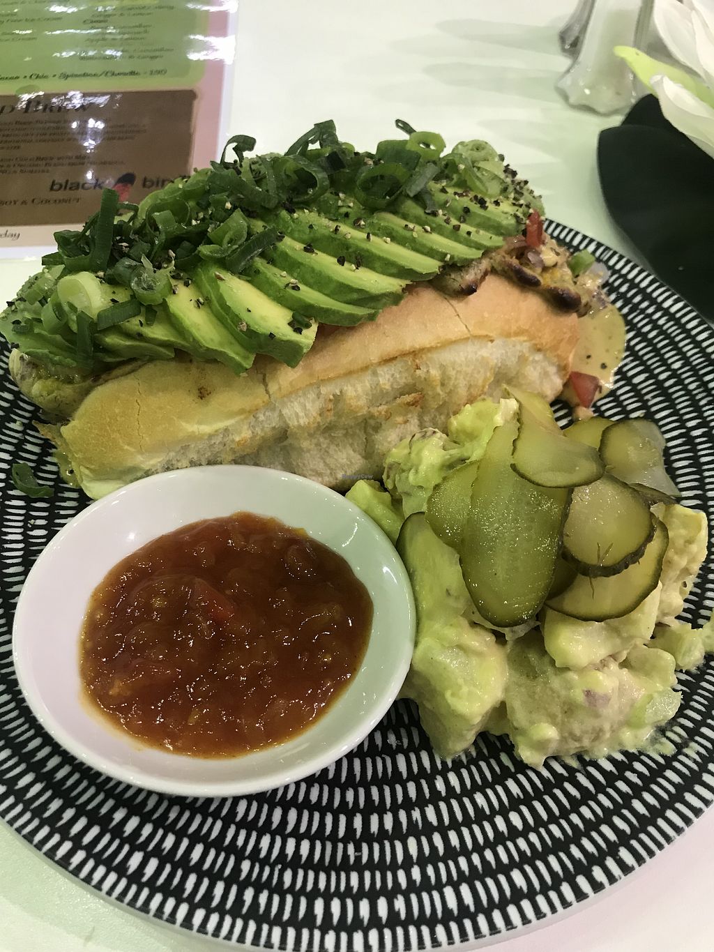 I had a delicious loaded hot dog with avo, cheeze and nooch; very big portions, filling, and delicious! They also have cupcakes and a good juice selection. Would recommend!