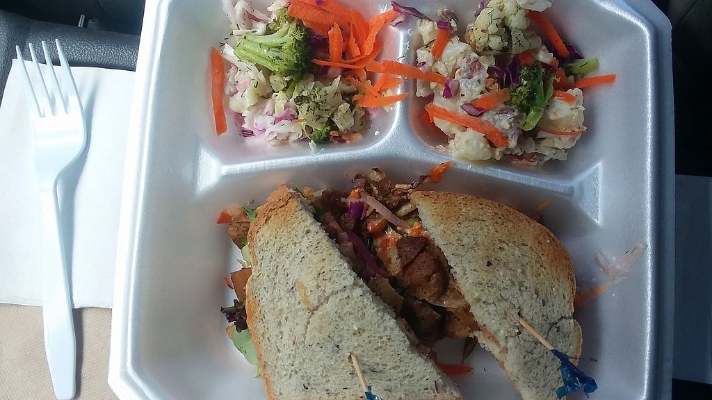 It is a cozy restaurant with alot of vegan options. The lady there was very friendly, nice and helpful. I tried the mock tuna melt sandwich and it was good but I did not think it tasted like tuna salad and there was no vegan cheese or anything melted. But I enjoyed it. I would have just called it an open face veggie sandwich since that's what it looked and tasted like. The potato salad was delicious. I plan to go back and try more things. They have tofu, tempeh, seitan, desserts, soups, etc. She said their mock chicken salad is made with tempeh. Overall it is a good place for vegans to visit.