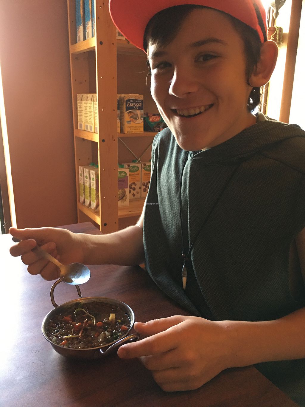 Let me start by saying my family are vegetarians, but my son has to avoid gluten & dairy, which makes it difficult to find places to eat locally with more than 1 option for him to eat, he was SO EXCITED to see all the options they had on their online menu - & then even happier to find there were even more options on the board in the cafe! We loved the atmosphere & the food! It was SO good! The staff was super friendly & happy to help my son find something vegan & gluten free! He LOVED the GF vegan lasagna & the salad that came with it (he is normally a picky eater)! I had the sweet potato pecan patty with potato salad & coleslaw - it was all SO good. I didn't find the portions small - we both left full :)