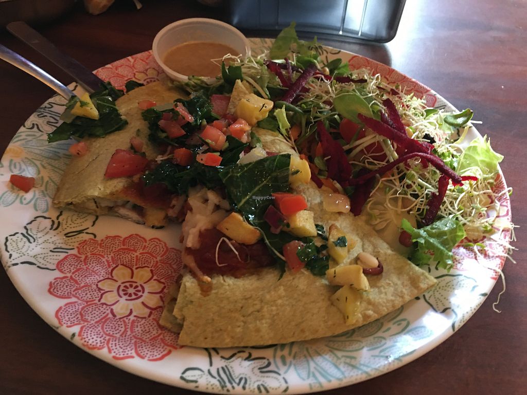 We are visiting town and found this place listed so thought we'd try it. The first impression with owner who took our order was that she was annoyed we were asking questions. Food was good and atmosphere was pleasant. The owner was so very nice and cheerful to obvious locals so we assumed it was a tourist thing. By the end of the check out she was better but it surprised us as we are usually welcomed by a vegan/ veg place.
