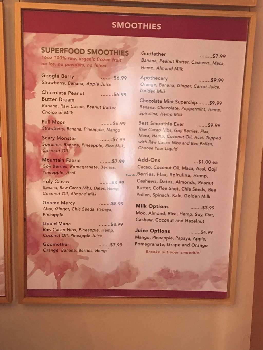 You choose from a menu of freshly made delicious vegan options. The smoothies are fabulous.