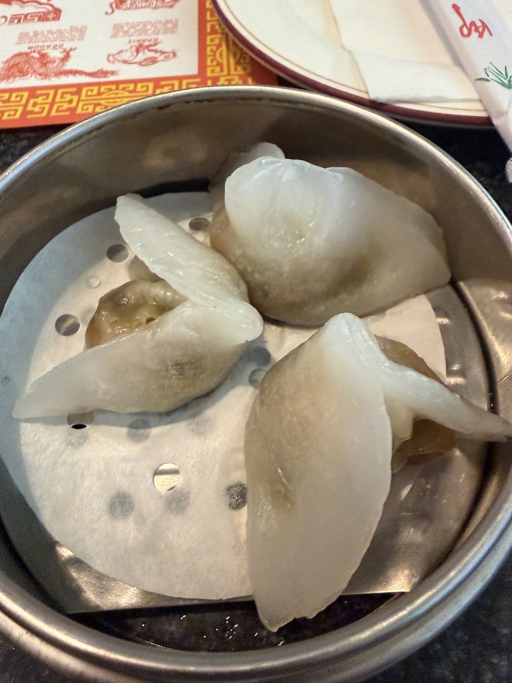 Substantial dim sum menu, with other options too. I thought the siu mai were just okay (didn't love the texture) but the steamed BBQ 'pork buns were excellent and so were the custard buns. Nice cool and quiet vibes feel like an escape from the heat and noise of Vegas. The classic Chinese zodiac placemat is nostalgic.