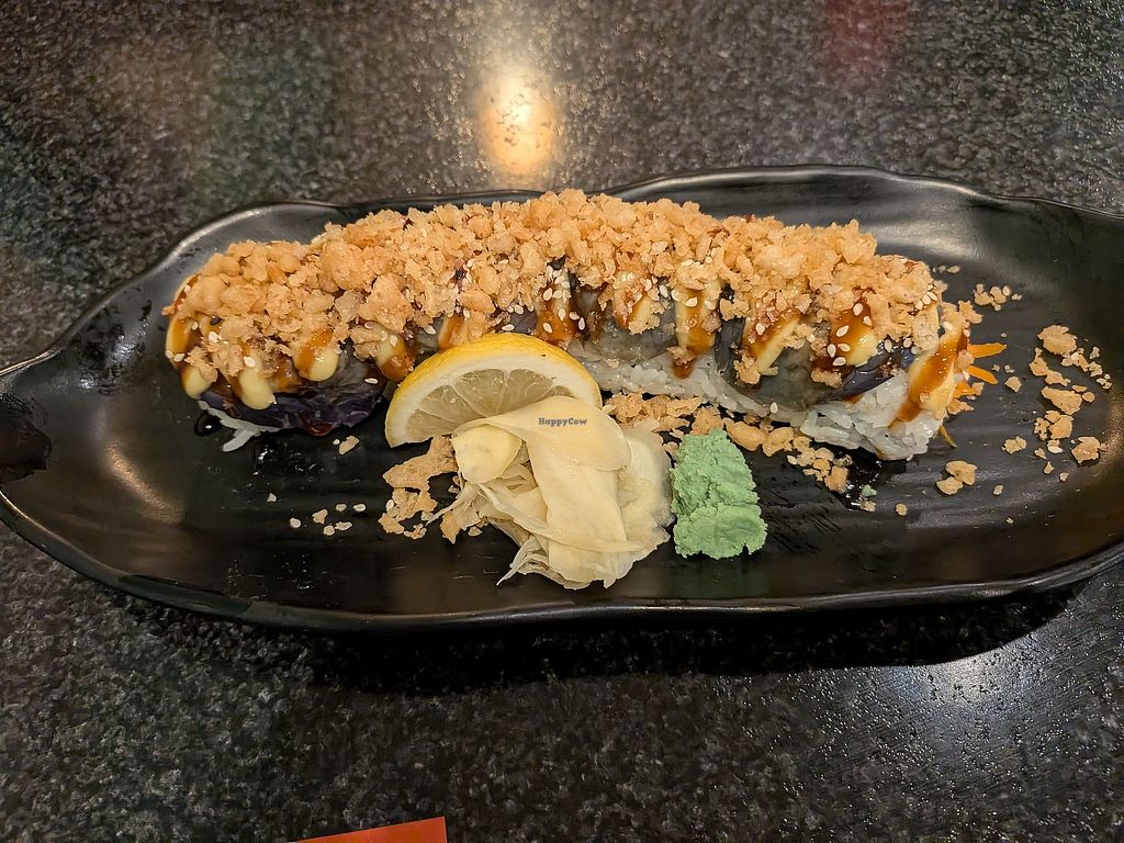 (top) spicy tuna roll, (middle) jackfruit roll, (bottom) dragon roll