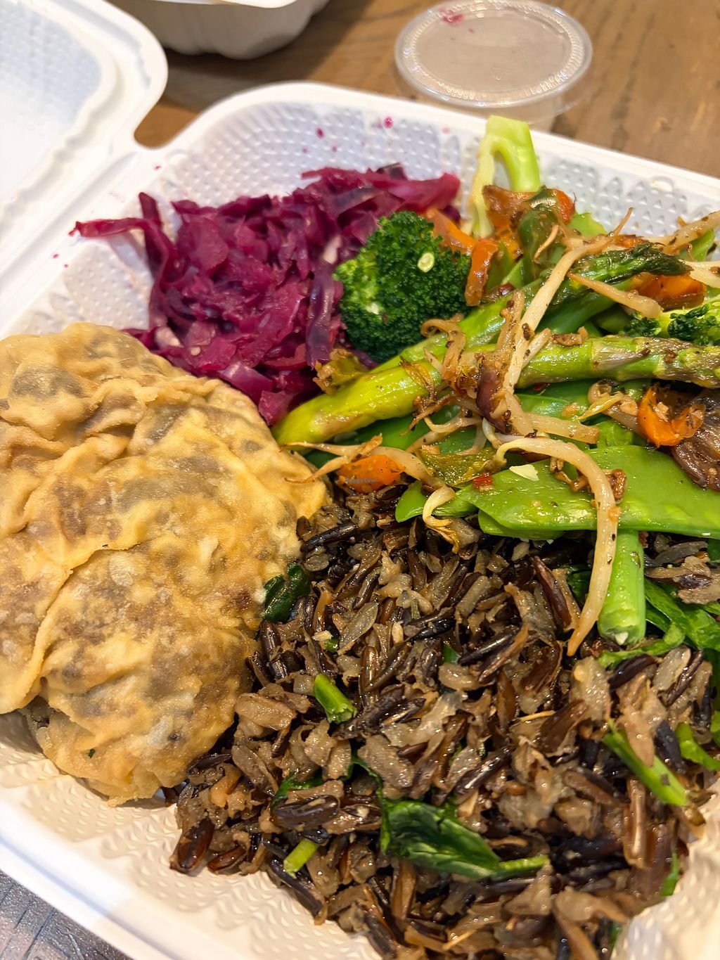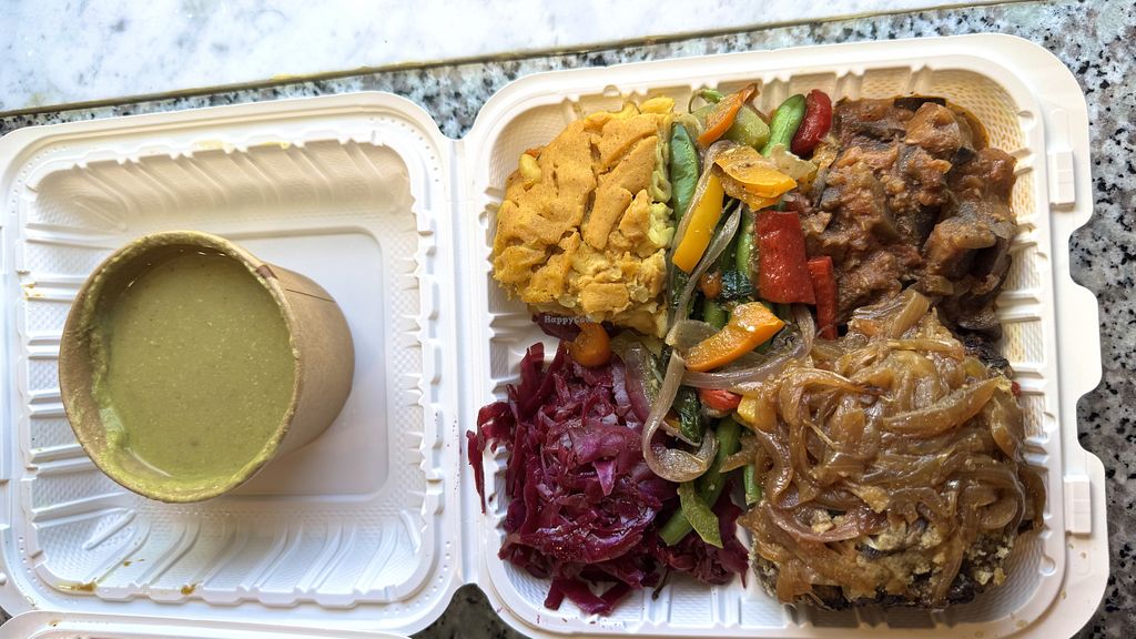 We were a group of 8 and had a mix of the chickpea and black bean patties, mushroom pastries and jackfruit and mushroom saute, all with salad or soup. I personally had the mushroom pastry and can absolutely recommend. I also tried the black bean patties and loved those too.
