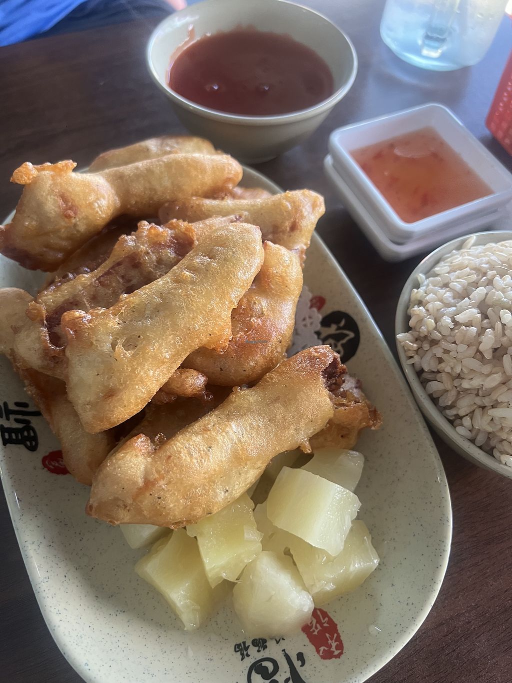 I really enjoyed my quick visit to this vegan restaurant. I went right as they opened, so it was not busy. The restaurant was cute and the menu is large! I had the lunch special which came with a spring roll and I had the mango chicken with rice. It was really yummy!