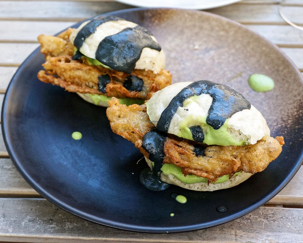 Aubergine rôtie, fromage végétal, sauce bbq maisonn