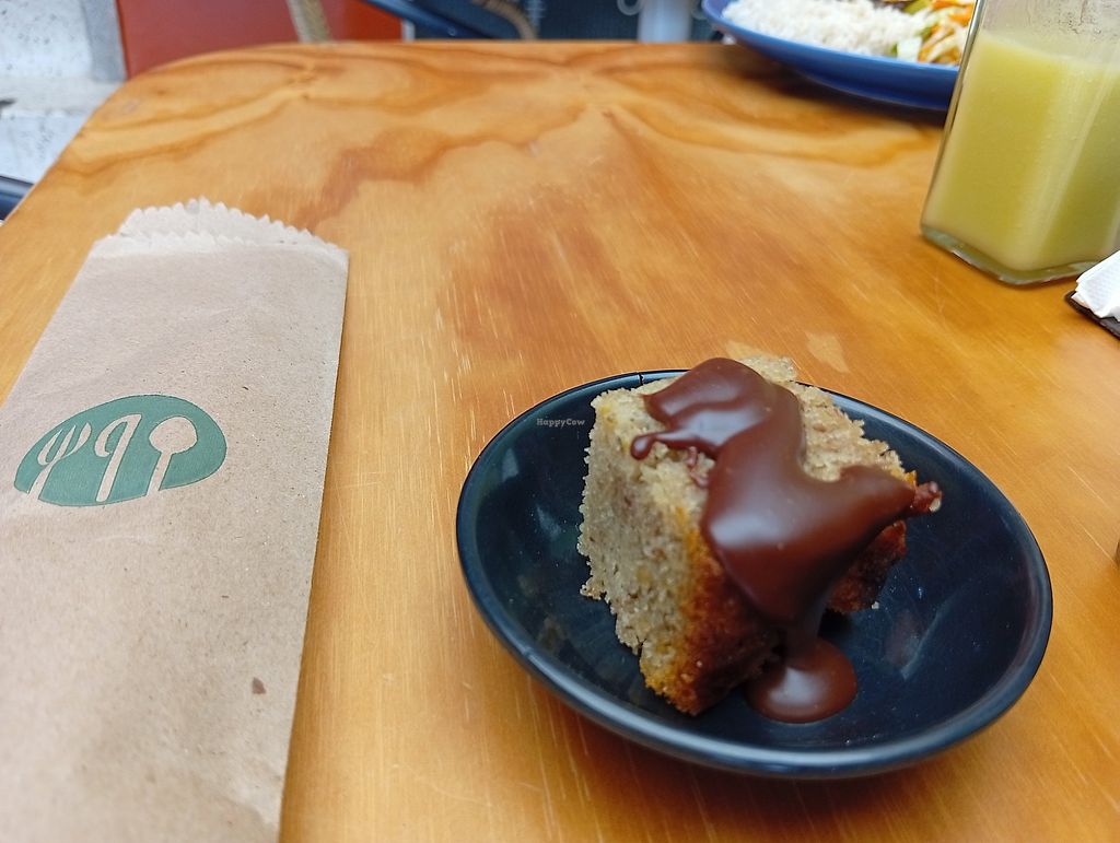 Postre: torta de banano con chocolate 🍫.