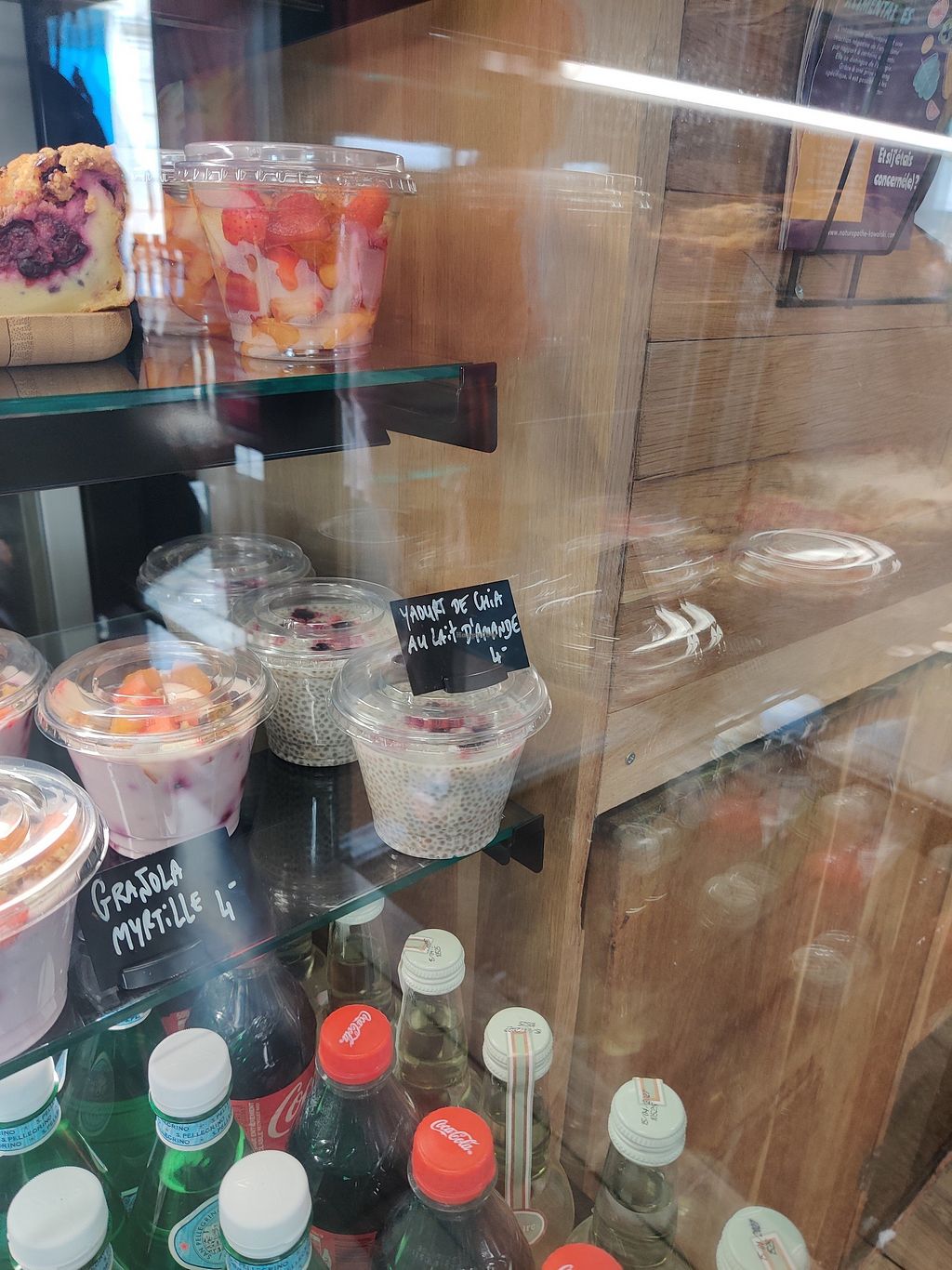 Les employés sont très gentils, les boissons sont gourmandes avec au choix lait de coco, avoine, amande ou soja ( 0,50cts) et il y a plusieurs choix de pâtisseries vegan
