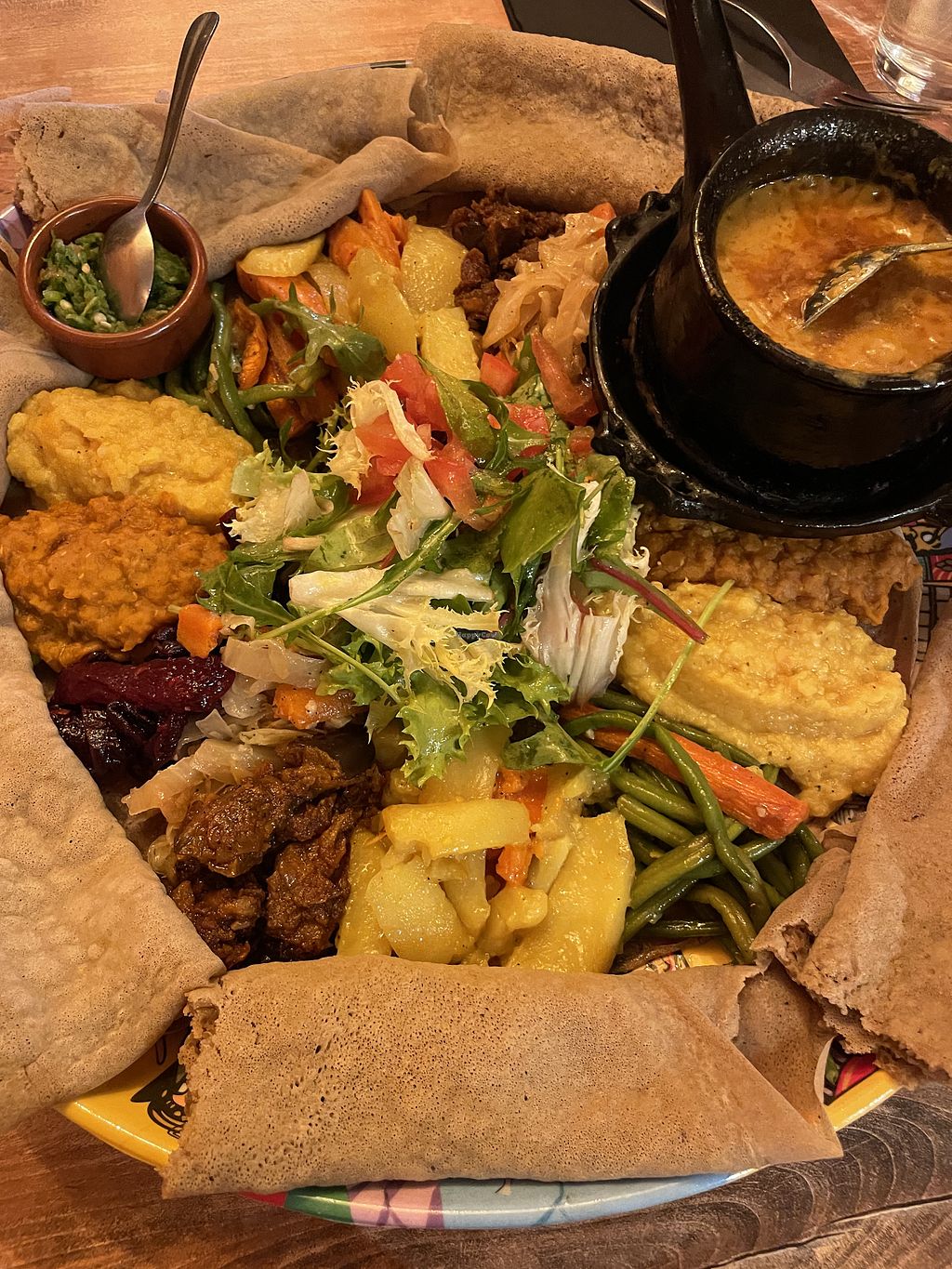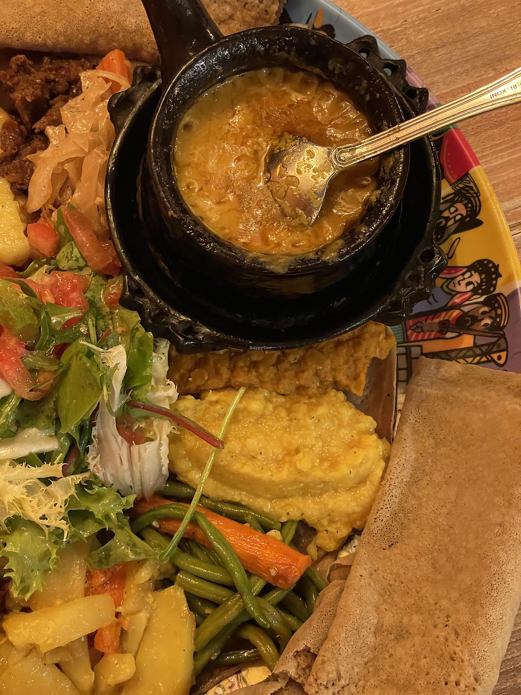 The vegan platter for 2 persons: spinach, green beans & carrots, tofu …