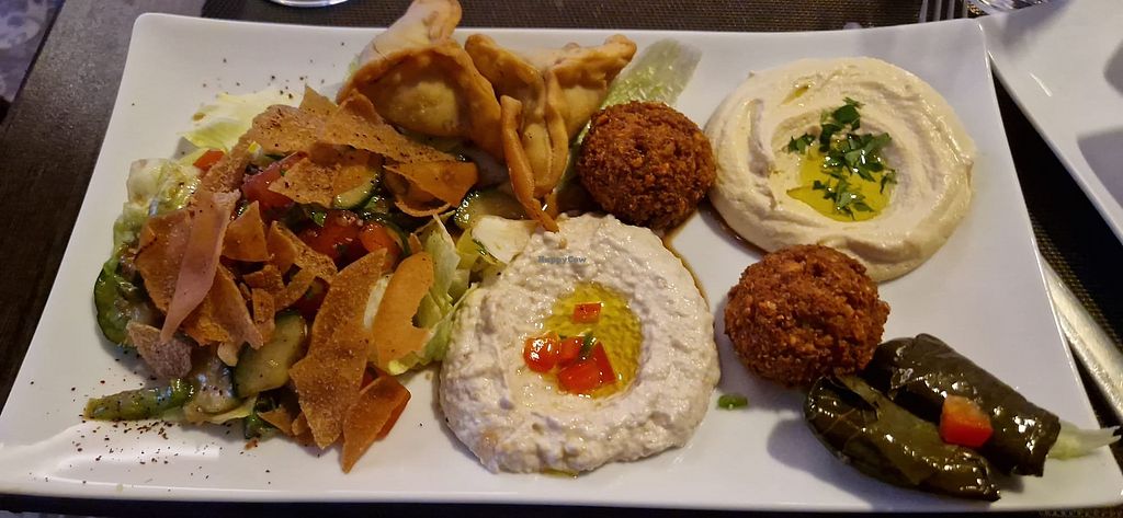 We wanted to eat vegan Lebanese food and couldn't get there until 9, which was too late for some places. I phoned Chez Bacchus which seemed happy to take a booking. The two gentlemen in charge couldn't have been friendlier. They spoke good English and knew about vegans. We all had the Assiette Dégustation (I think it was), a selection of vegan mezzes, all of which were excellent (the fattoush was probably my favourite).With generous portions, I thought it was good value for food of this standard. It's a pleasant, relaxed restaurant, in contrast with some places which seem to be mainly takeaways.