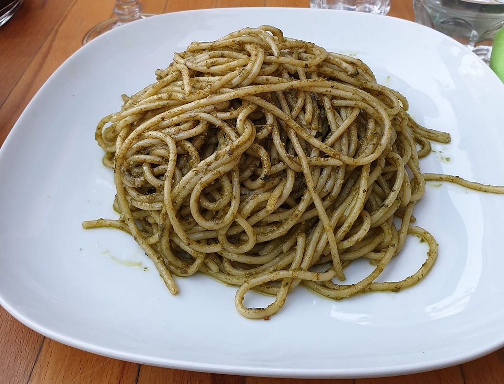 A restaurant with a clearly labelled vegan menù. I ate a delicious gazpacho, rice with spicy vegetables and a strawberry ice cream. They also offer an italian menù which spaghetti with pesto are vegan as well