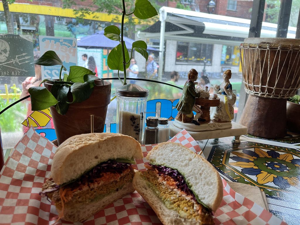 Un bon moment, il faut être patient en heure de pointe surtout si vous venez en groupe car l'endroit est petit il peut donc y avoir de l'attente. Les options véganes sont variées, ils font leur propre végé pâté à base de graines de tournesol (sans noix). Il y a parfois des options sucrées véganes mais c'est rare, il faut donc se rabattre sur les smoothies pour satisfaire sa dent sucrée.