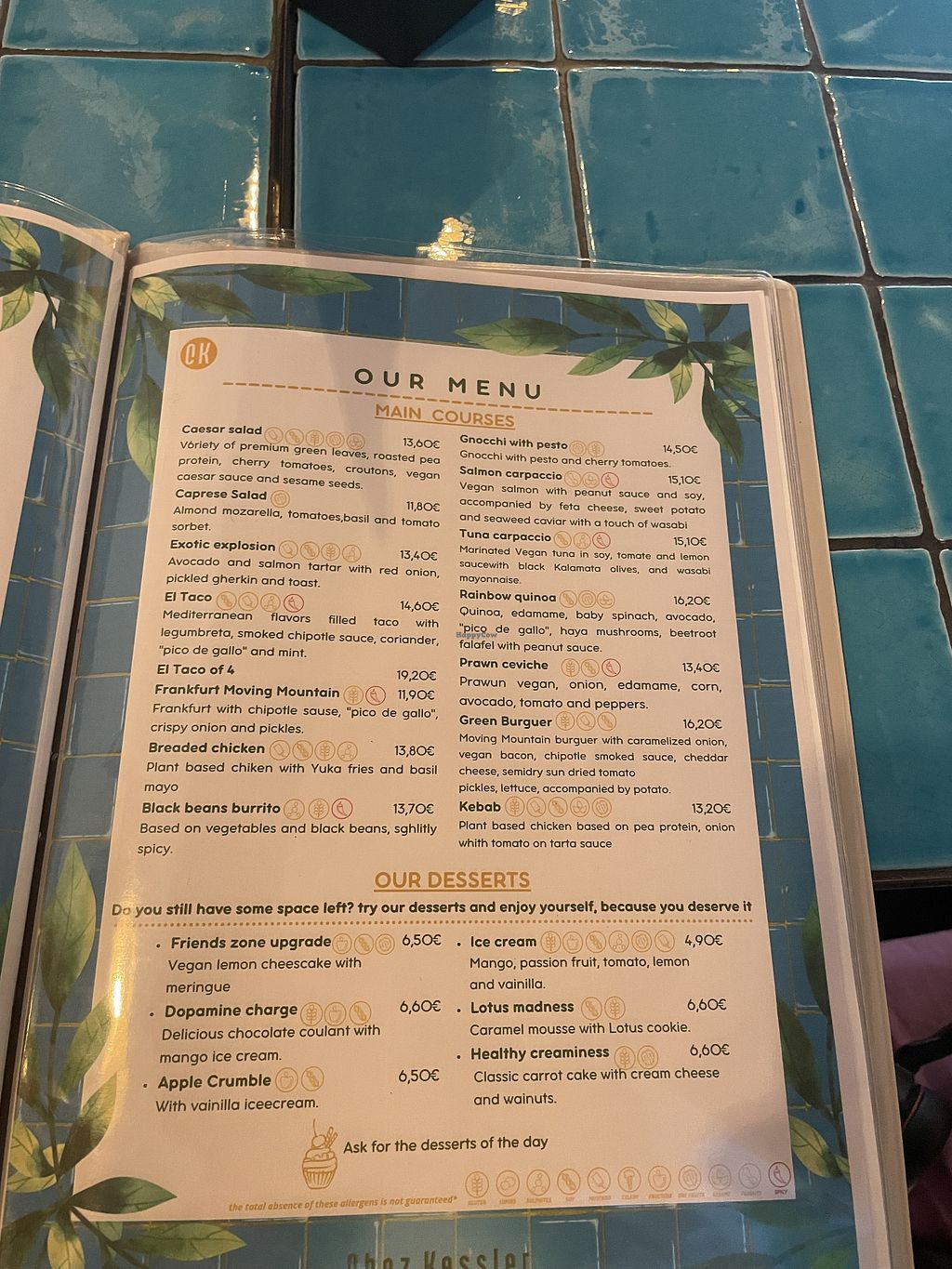 Main courses and desserts